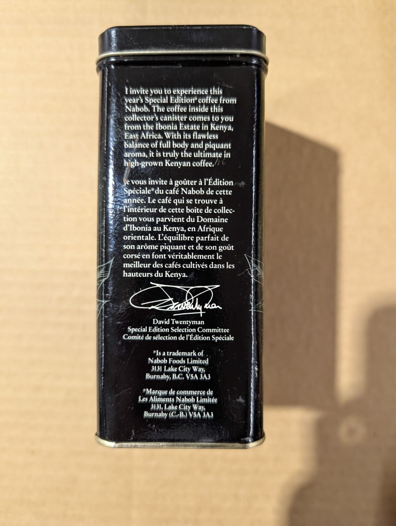 Special Edition NABOB Kenya Ibonia Estate Tin w/ Spare Tin