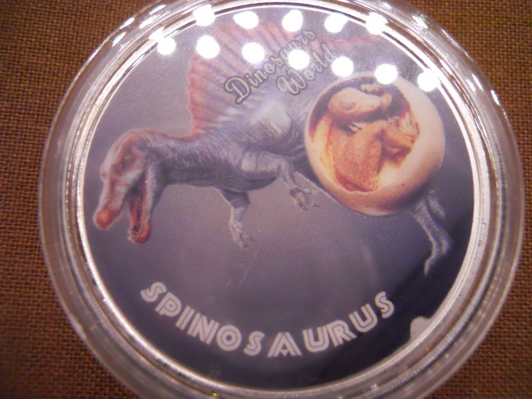 Spinosaurus Jurassic time Dinosaurs world NEW 1.5" In plastic coin case.