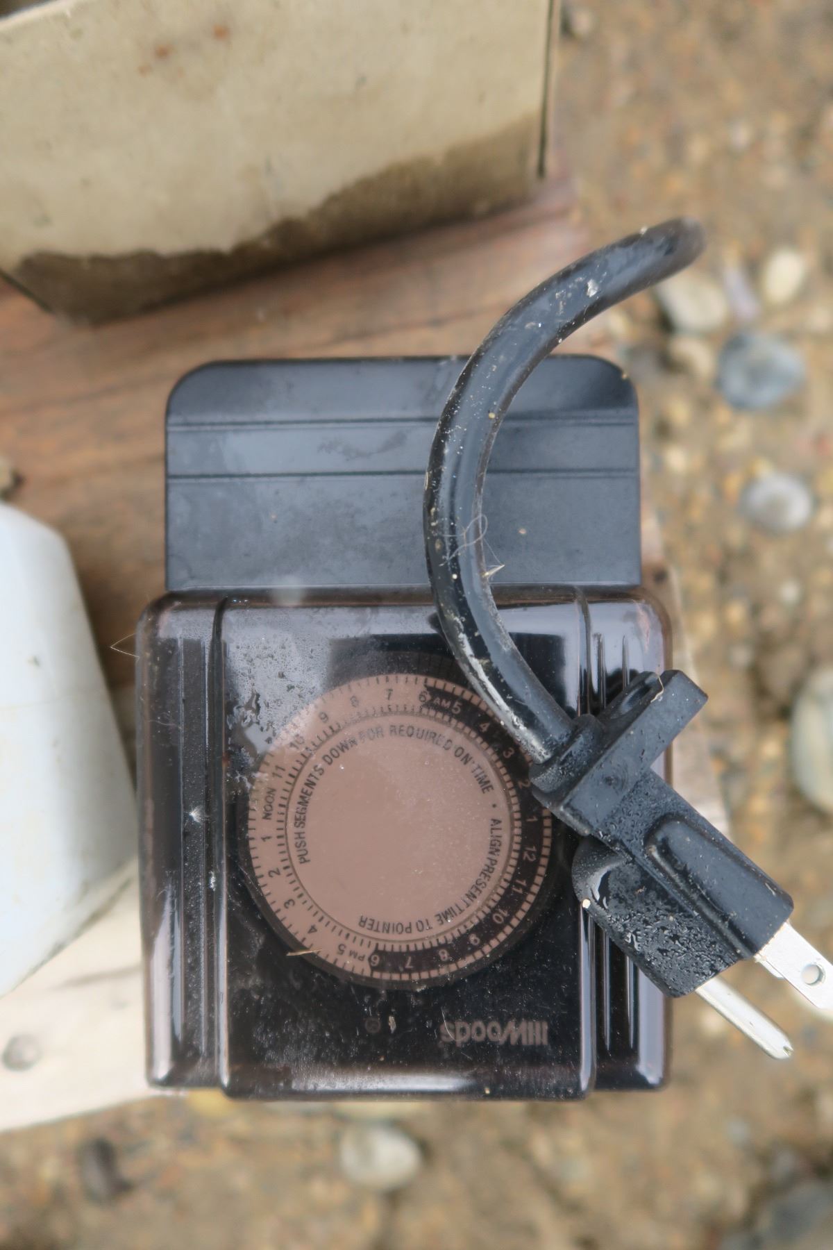 Sprayer, hard hats & hockey nets, vehicle speakers, block heater timer