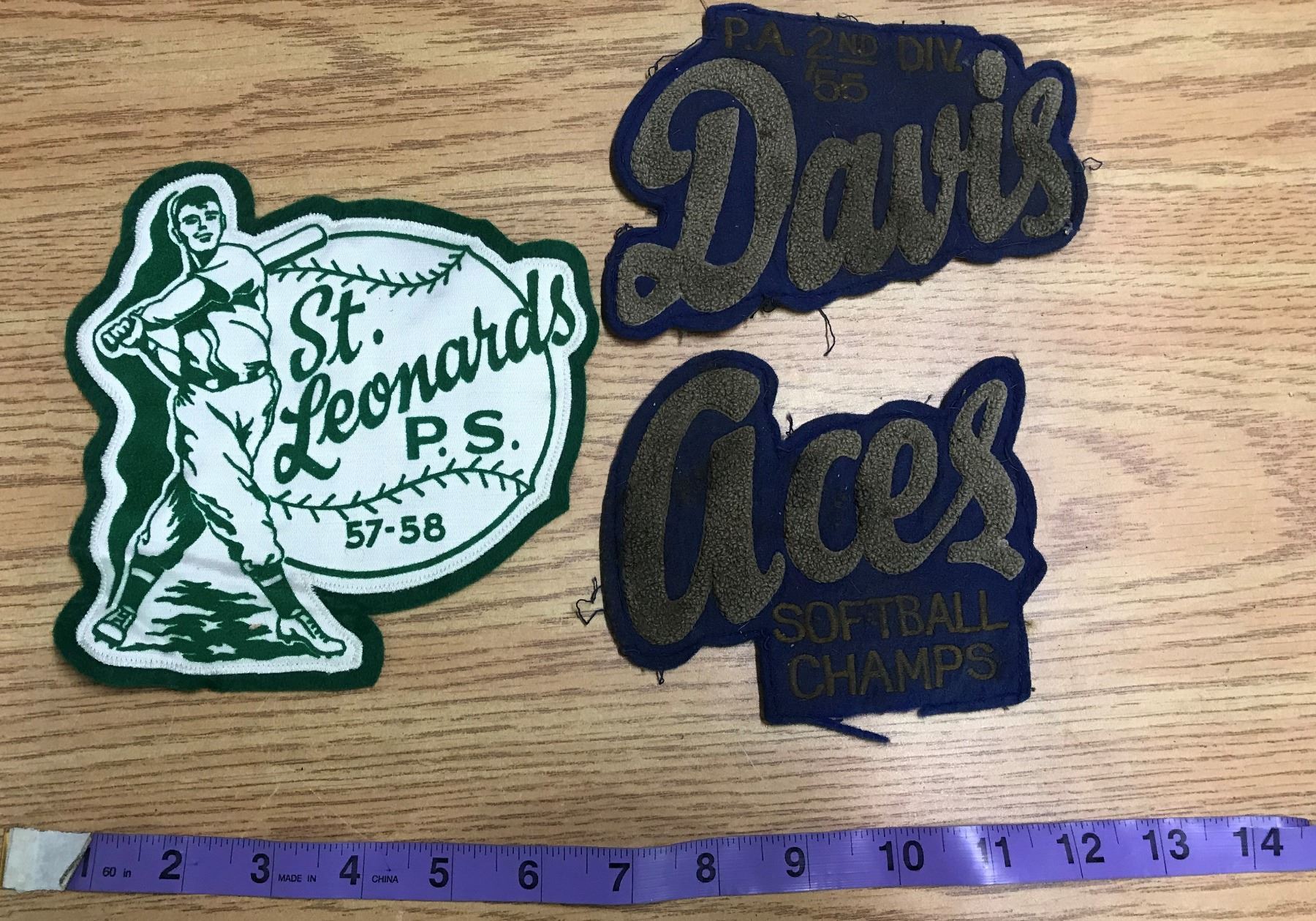 St.Leonards P.S 57-58 + P.A 2nd Division Davis 55 + Aces Softball Champs Patches