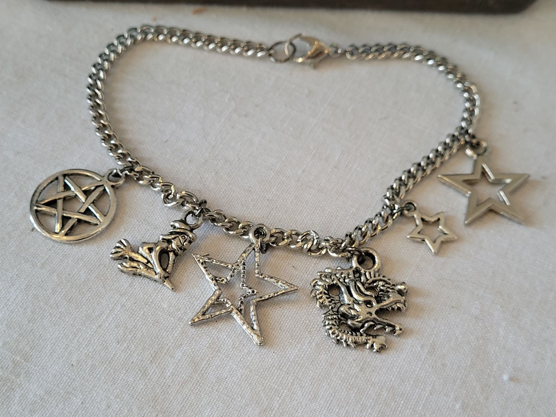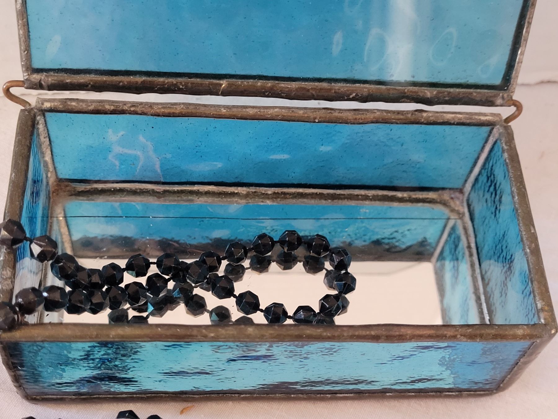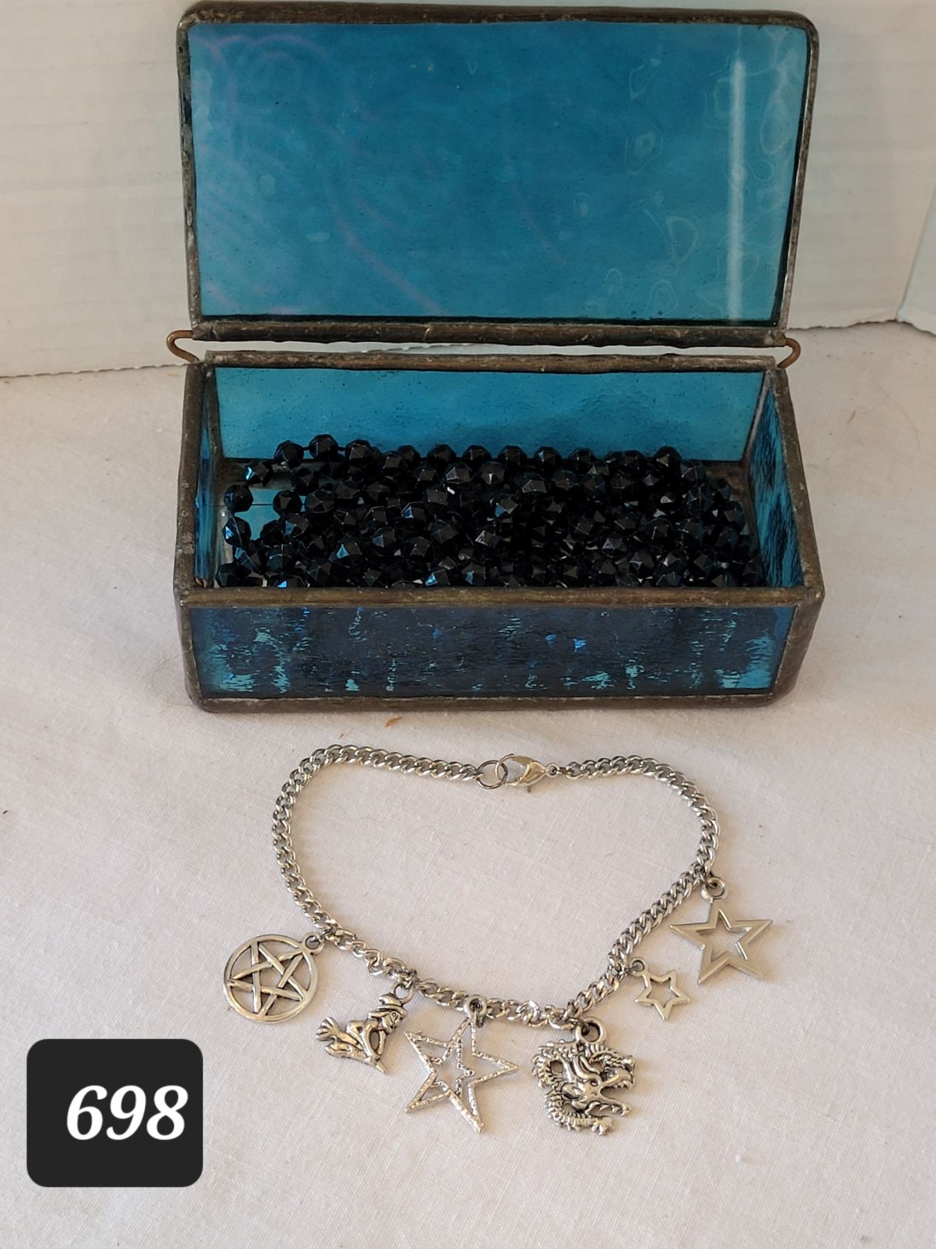 Stained glass trinket box with beads & dragon charm bracelet