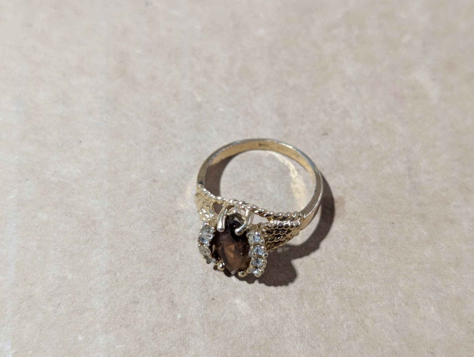 Stamped 14K Ring W/ Amber Color Gem Stone (Unverified)