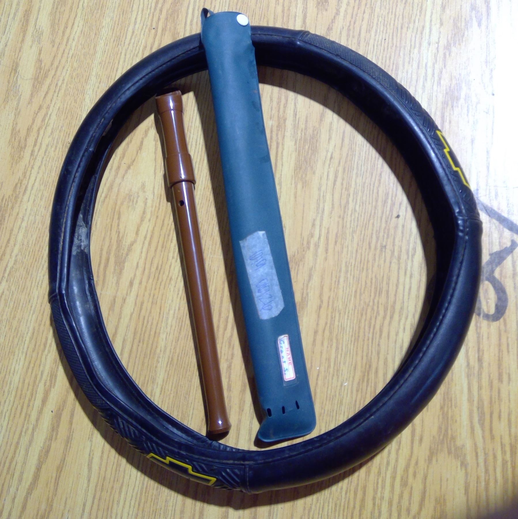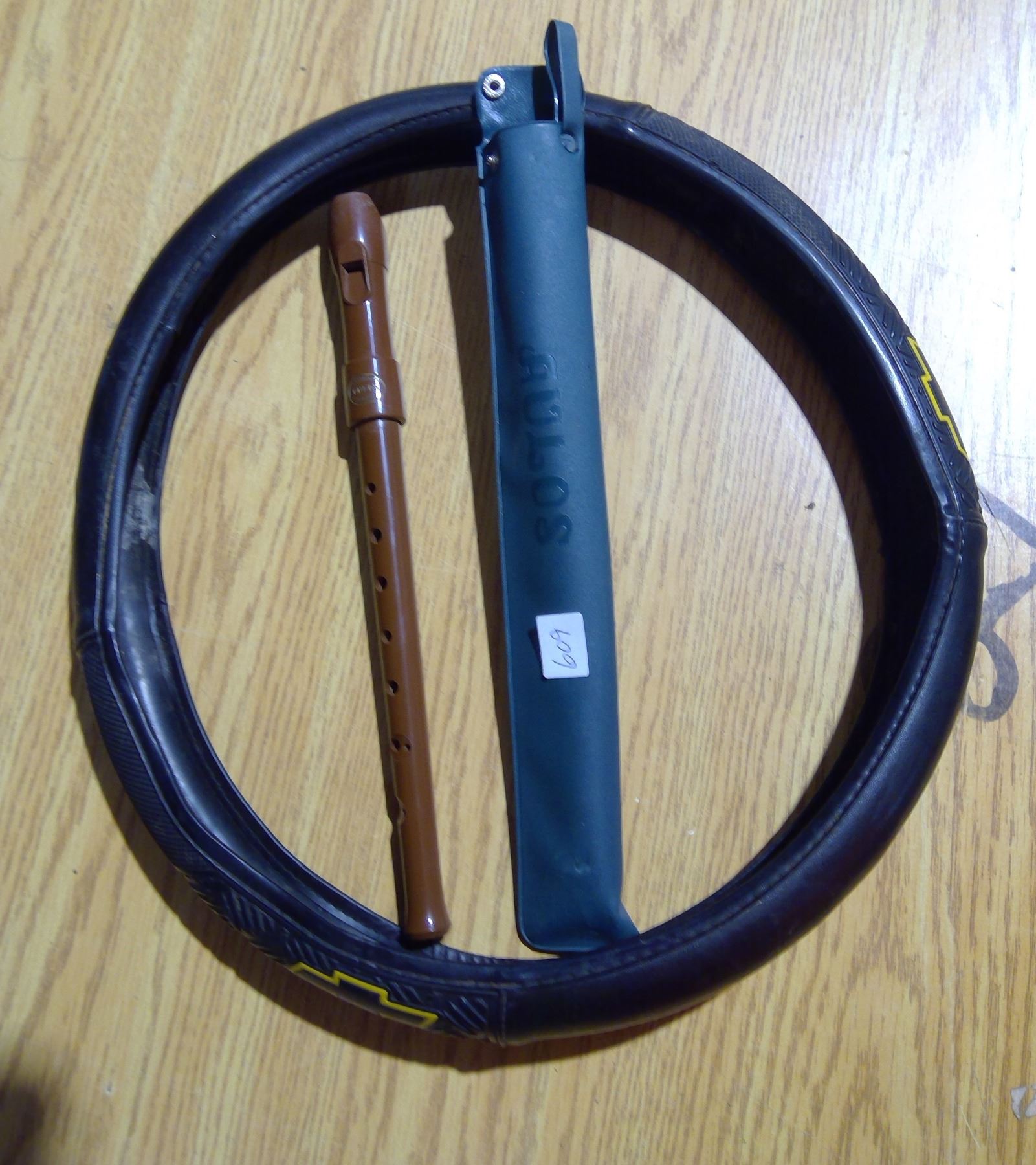 Standard Aulos Toyama recorder and chev steering wheel cover