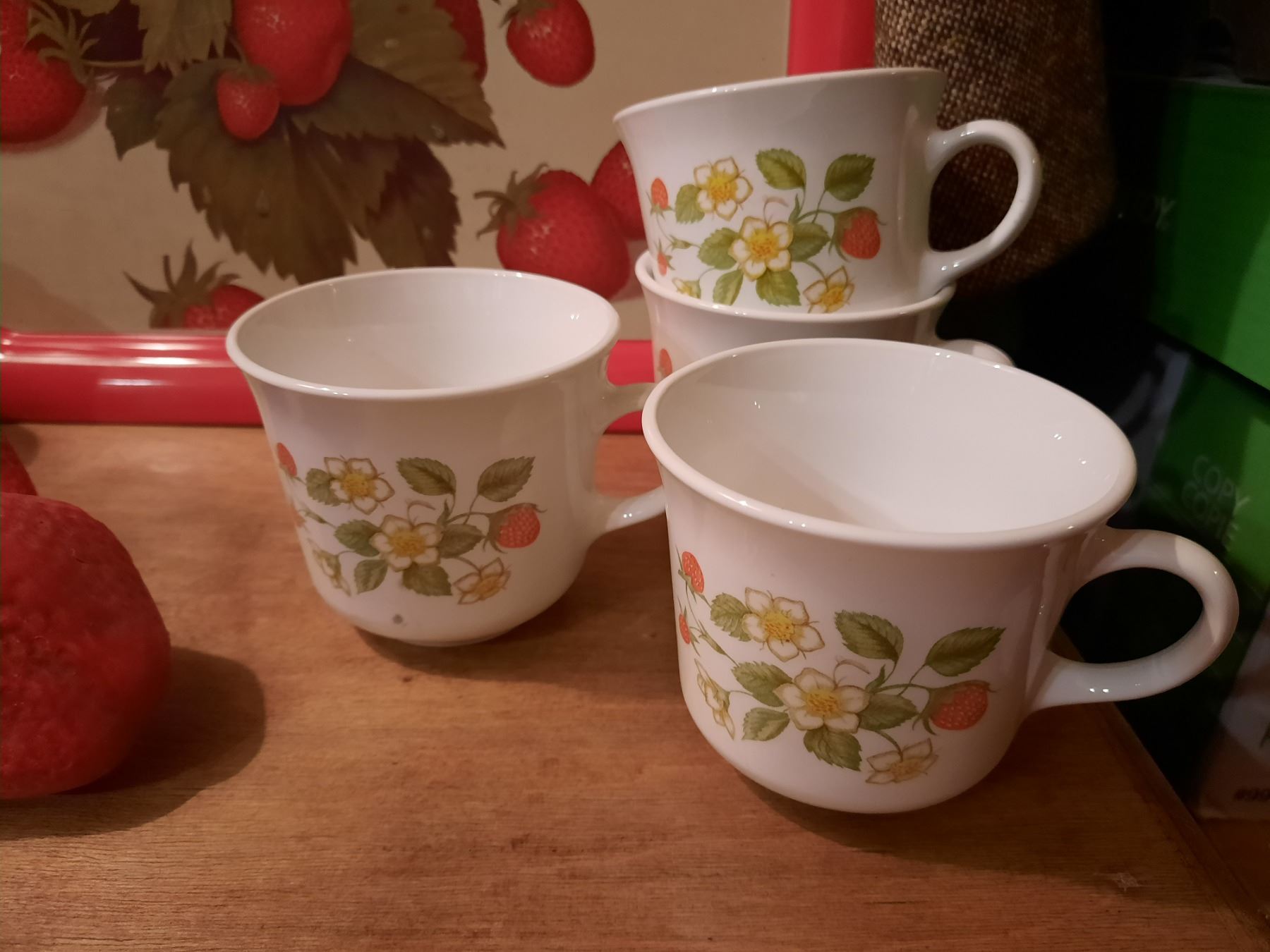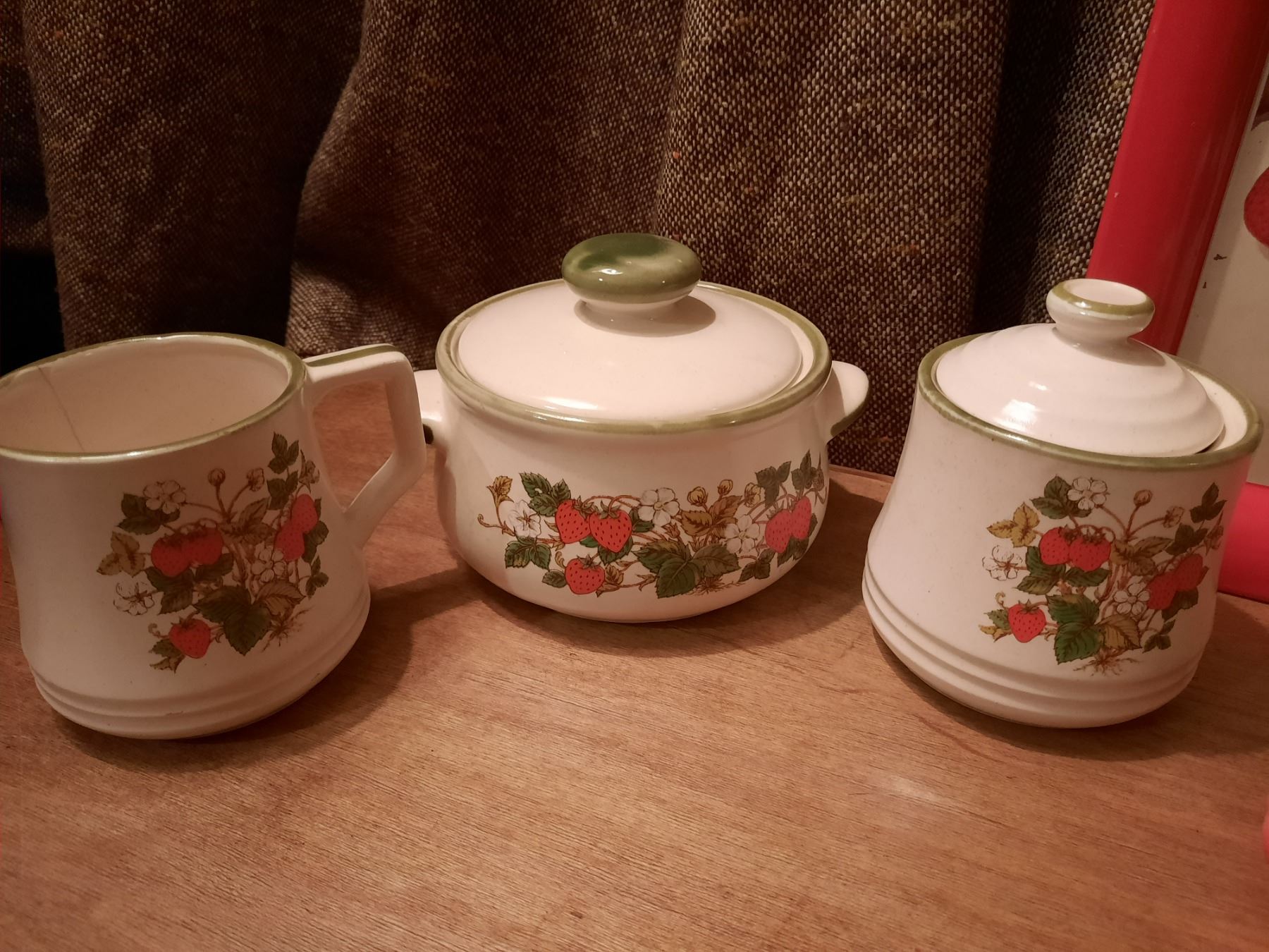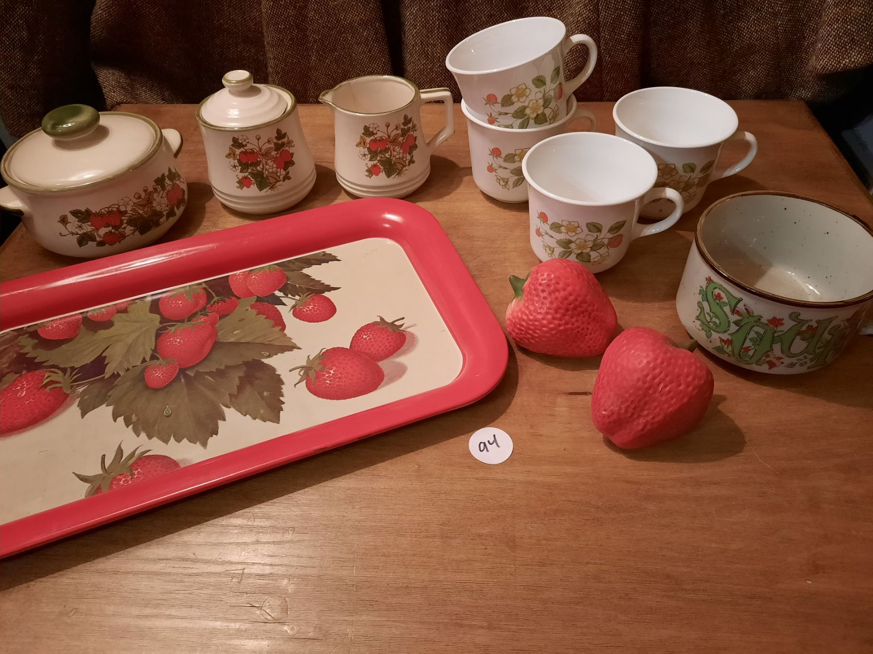 Stawberry Cups (Corelle), Tray, S&P, Cream & Sugar
