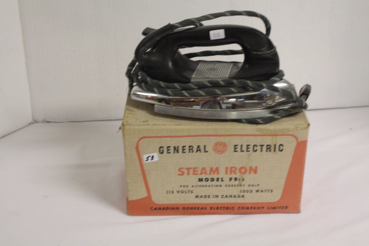 A General Electric steam iron still with it's original box
