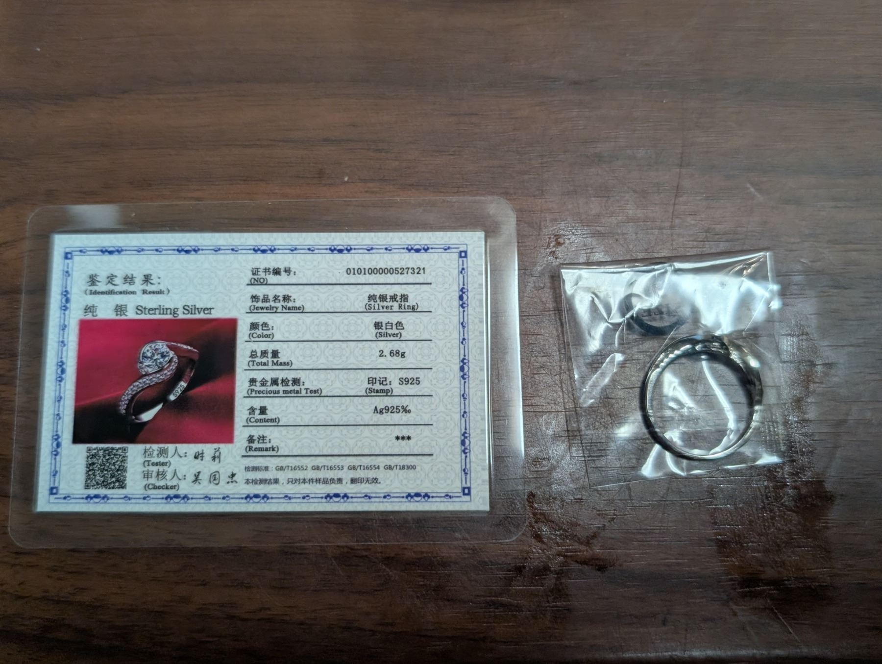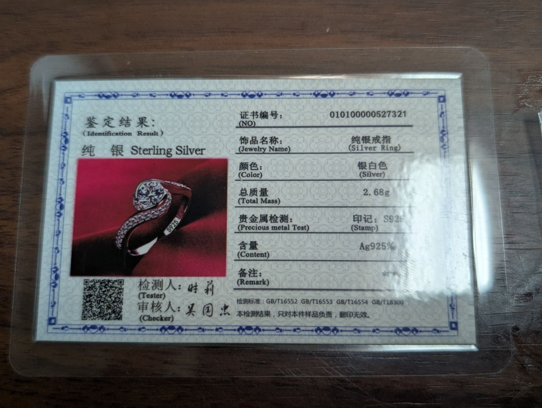 Sterling Silver 2.68g Stamped 9.25 Ring w/Certificate