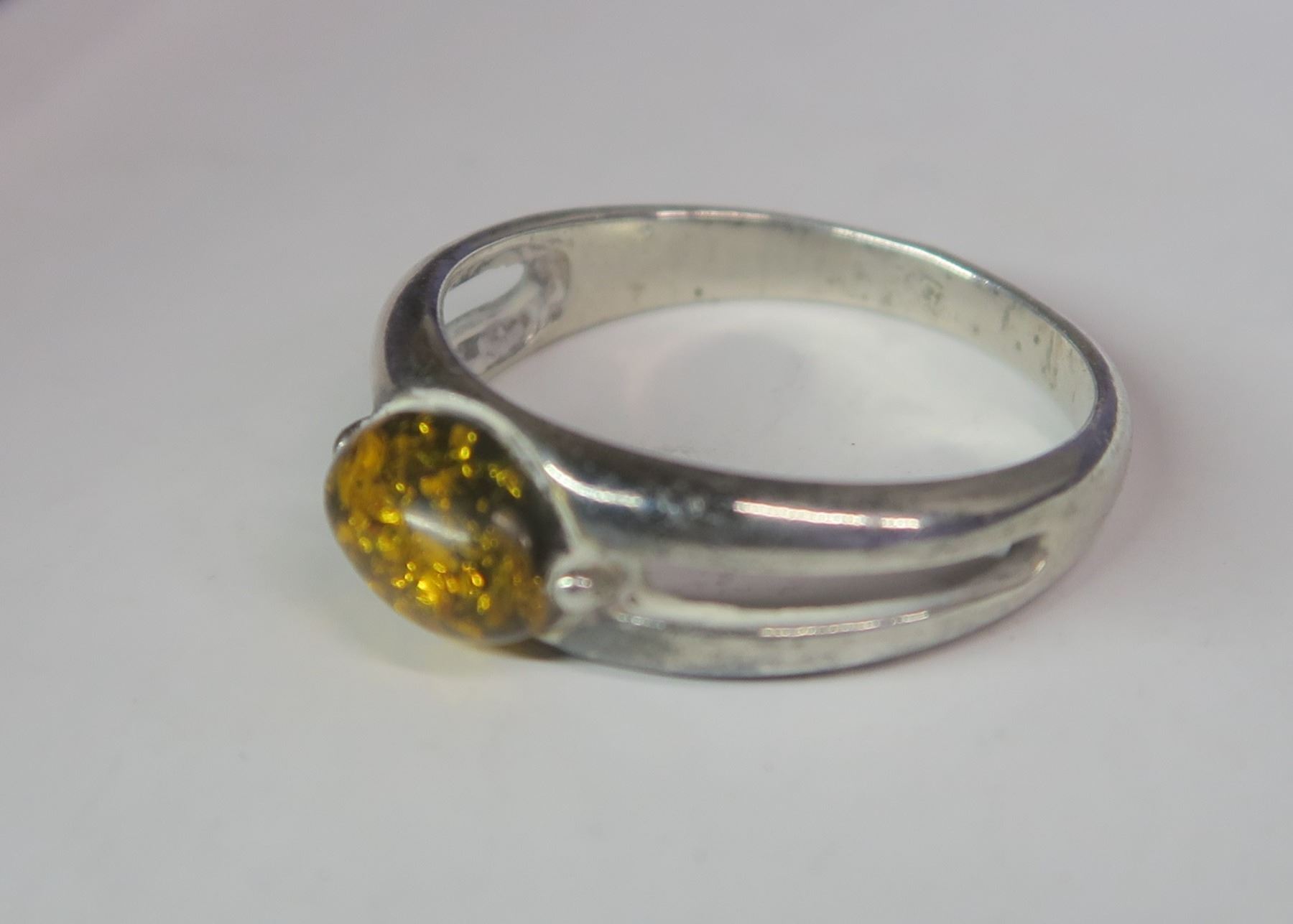 Sterling silver ring with yellow/amber stone