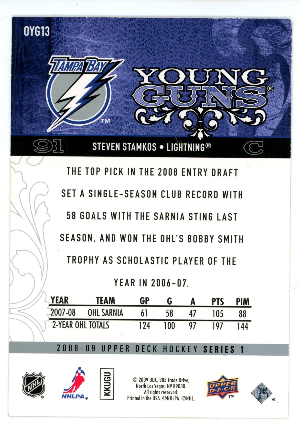 Steven stamkos jumbo young guns 2008-09 U.D #OYG13