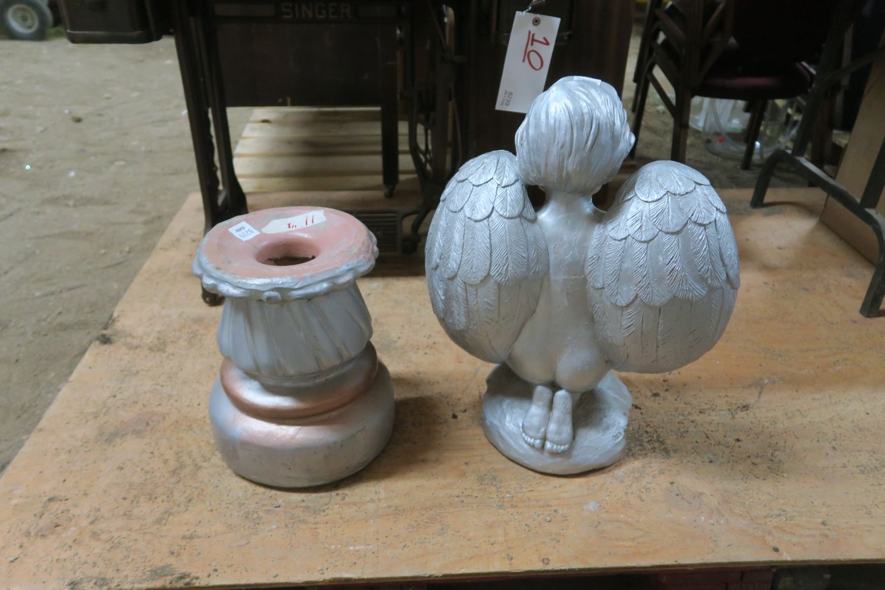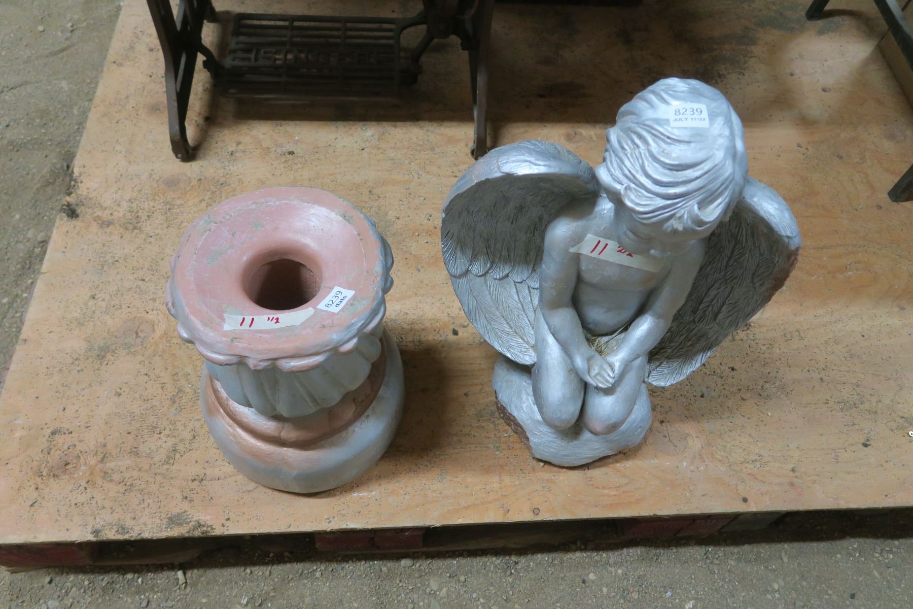 Stone/Concrete Lawn Ornaments - Pillar 13" Tall, Angel 20" Tall