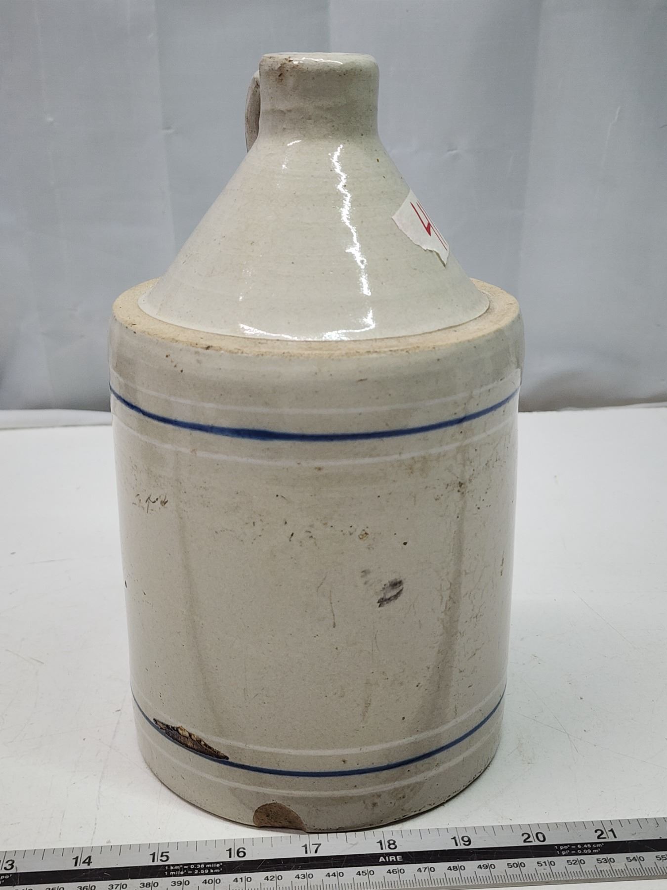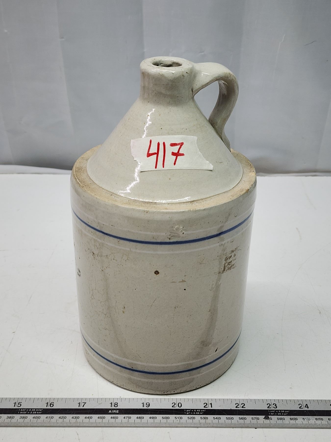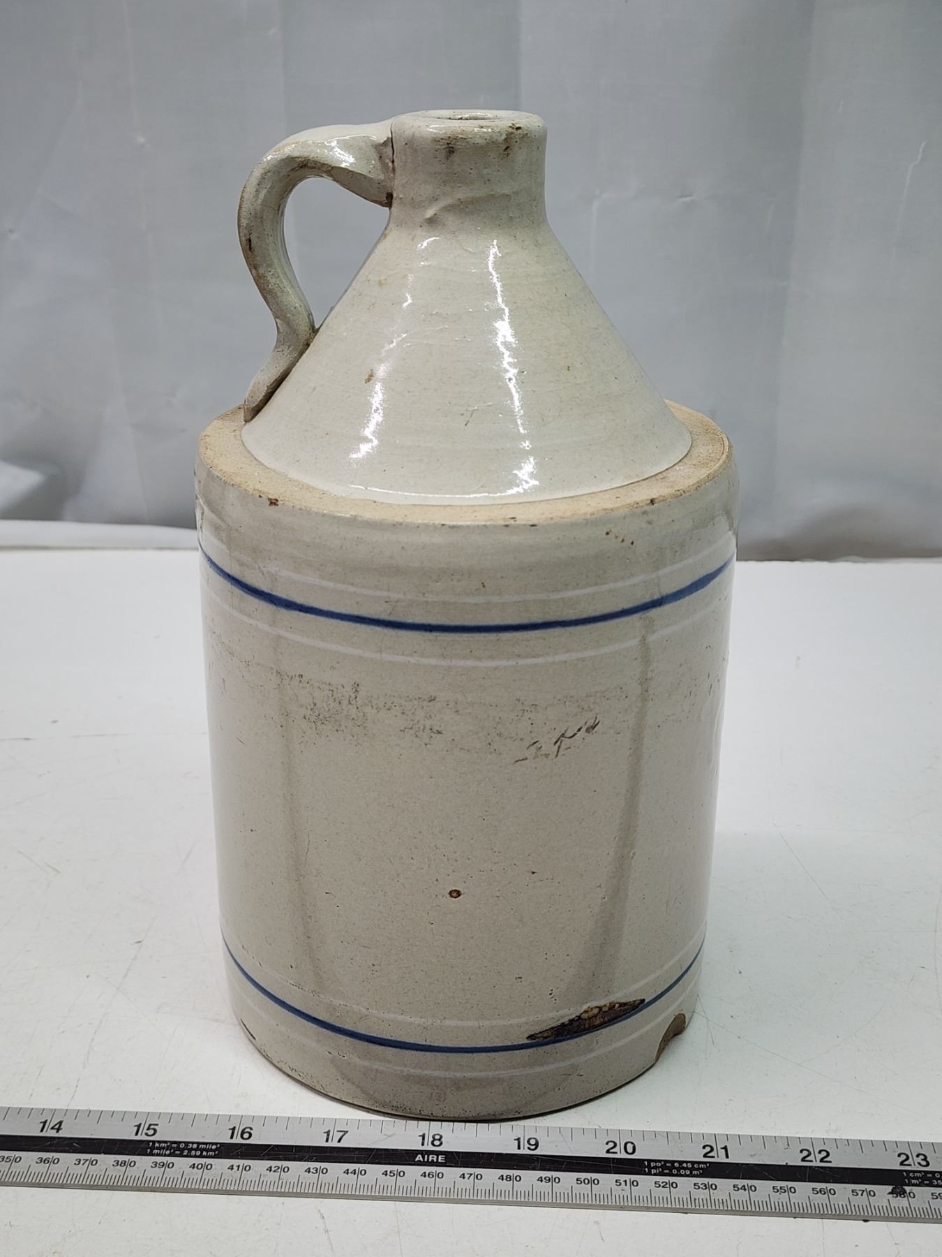 Stoneware jug, w/ blue stripe