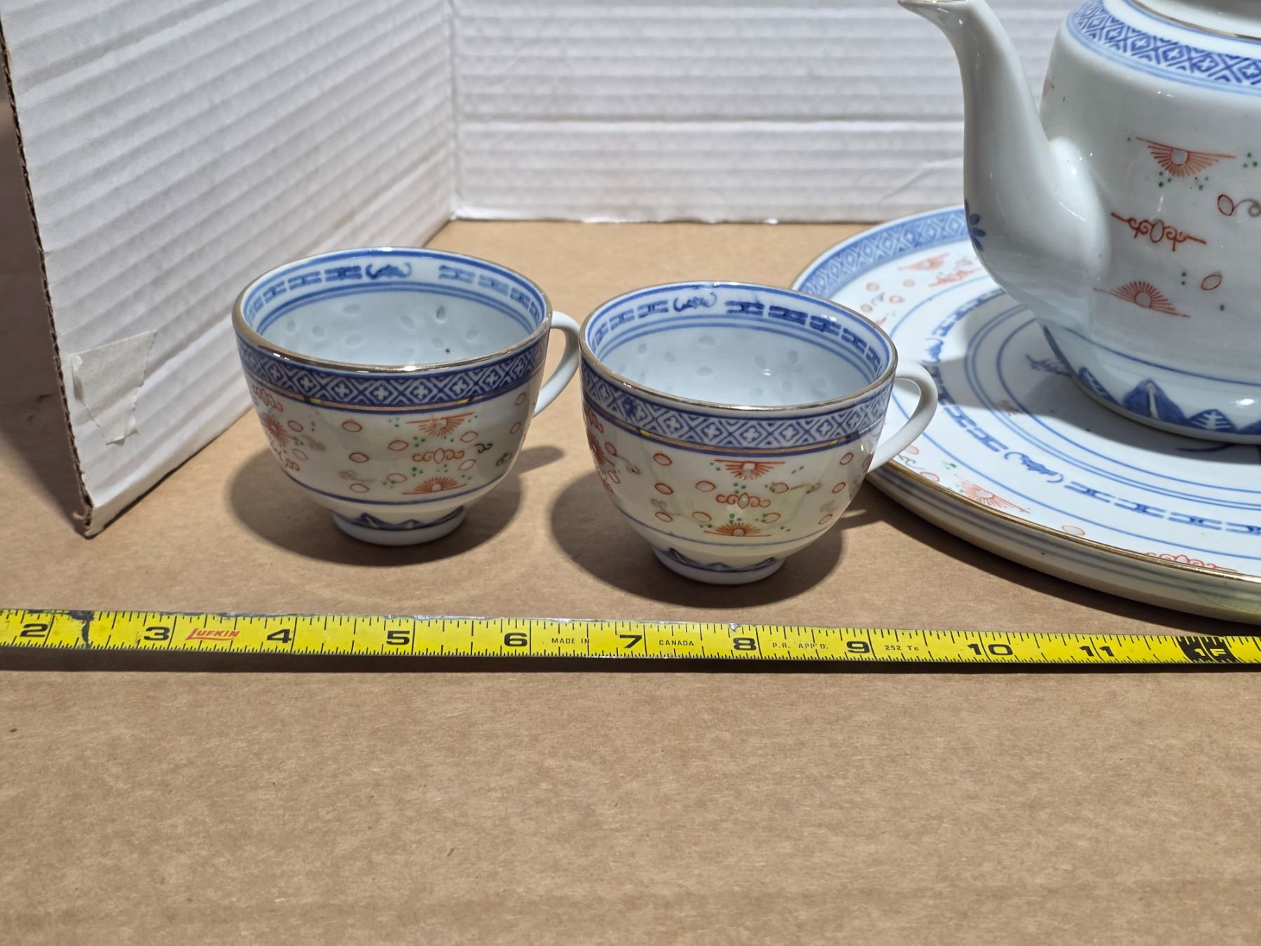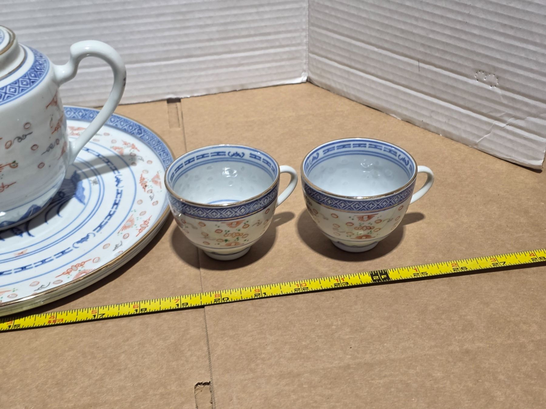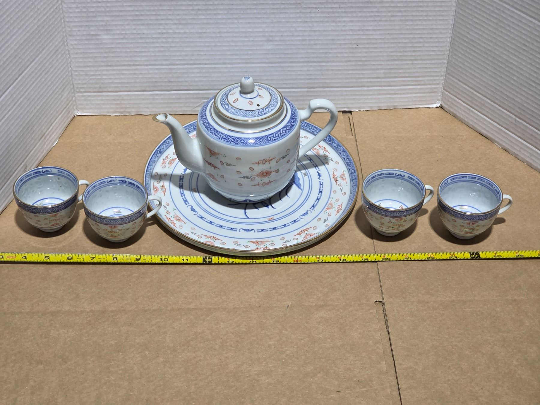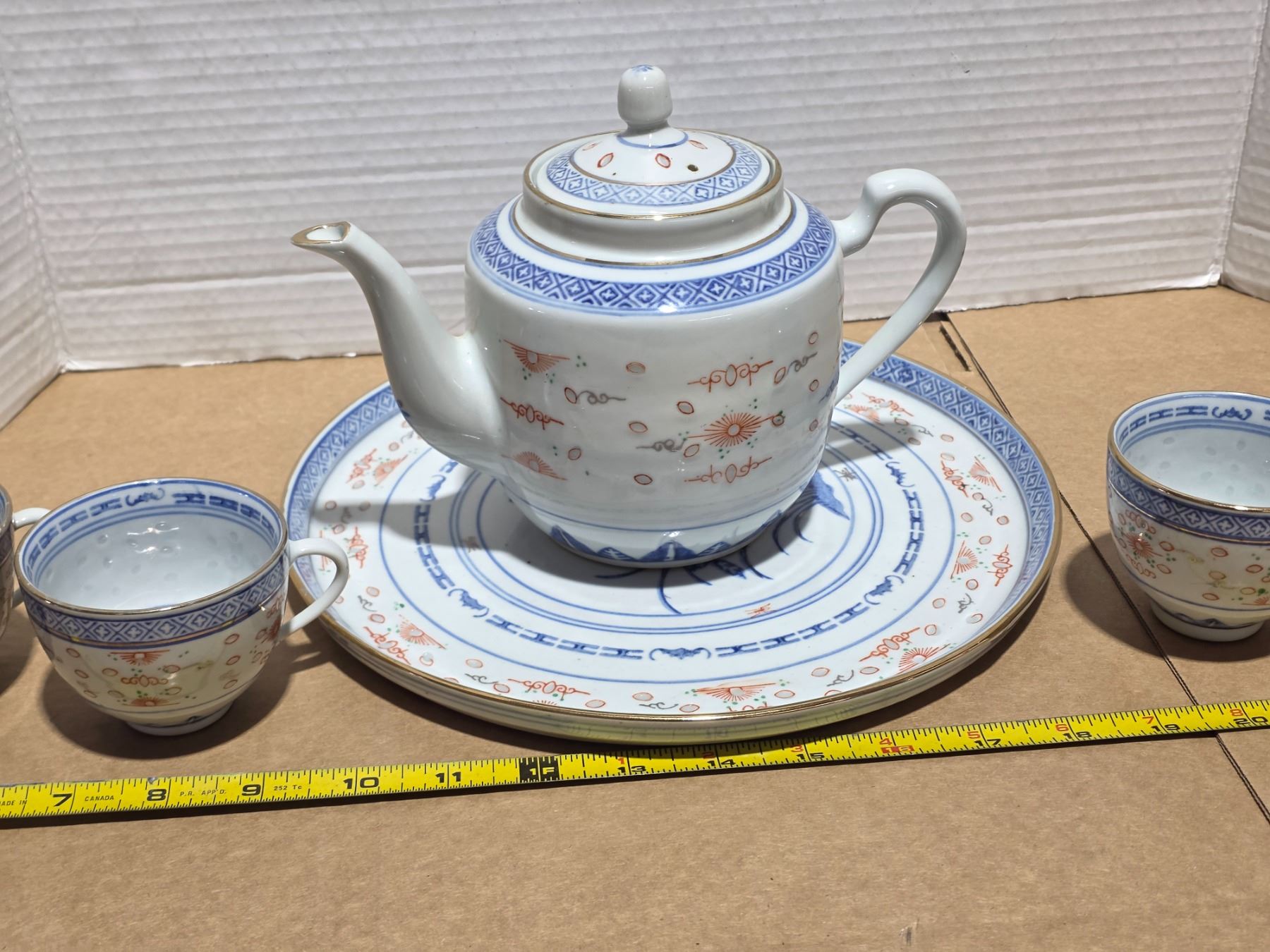 Stoneware teapot, base and cups