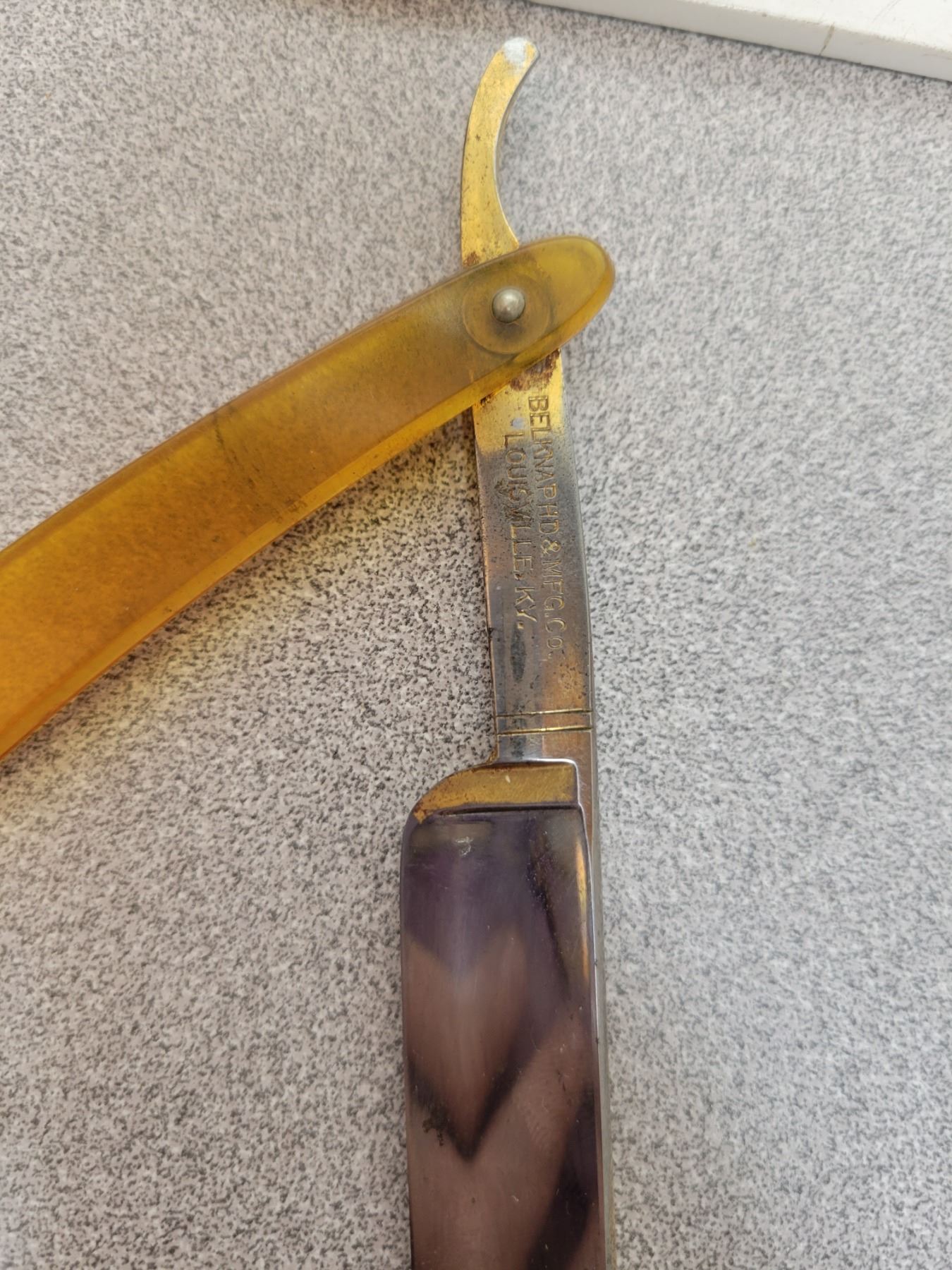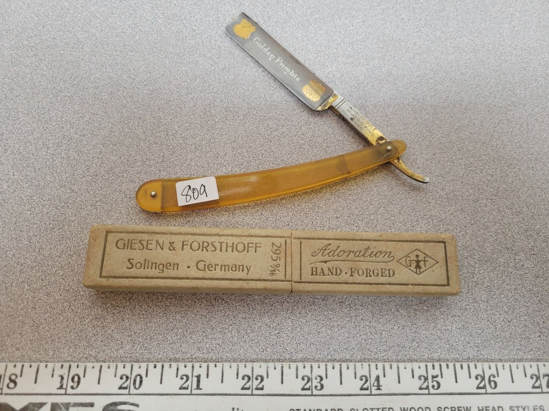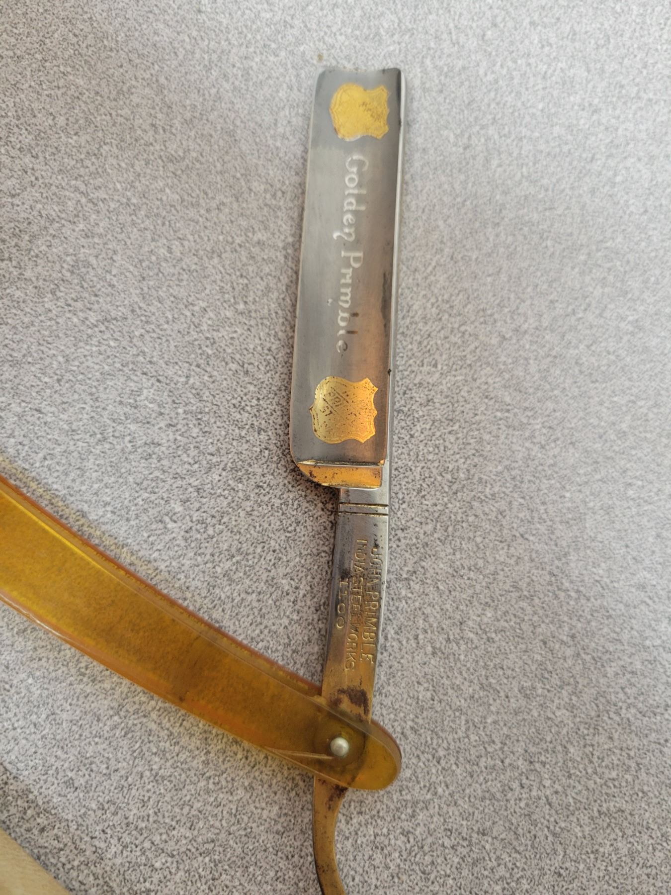 Straight razor in box by John Primble "Golden Primble" on blade Kentucky, USA gold trim
