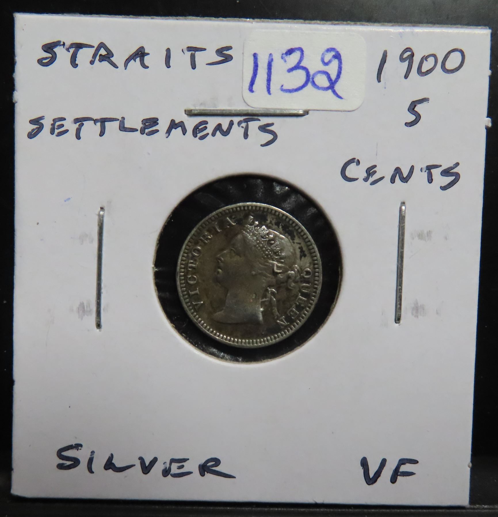 Straits settlements. 1900 silver 5 cents. Queen victoria. VF. Silver