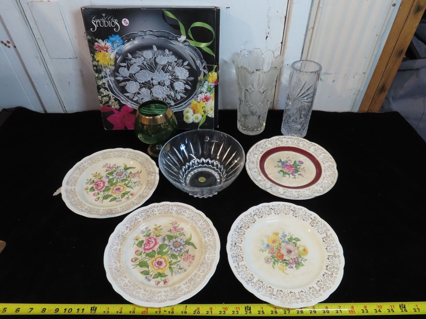 Studios Bouquet plate + 2 Crystal vases, + Bowl