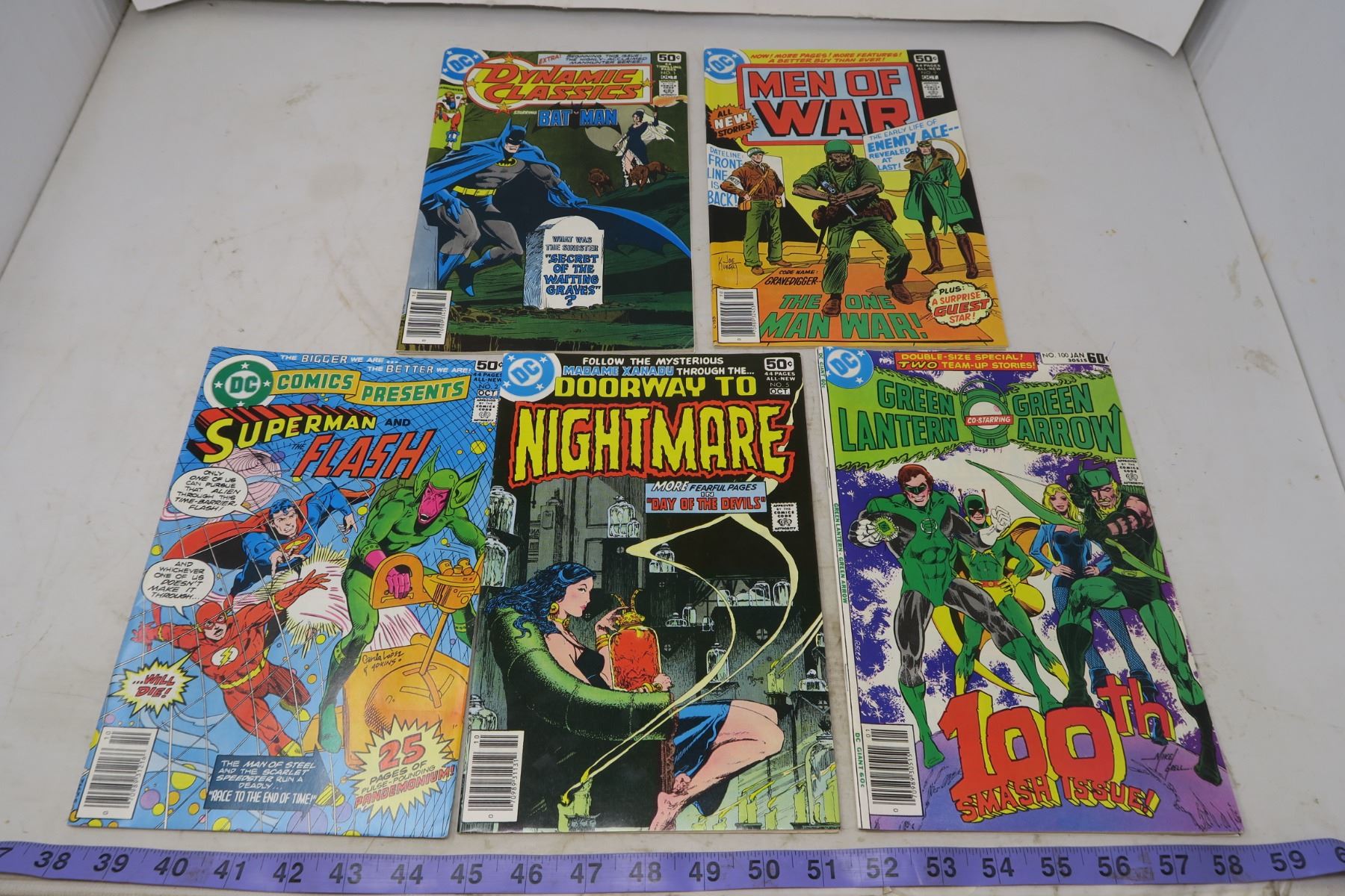 Superman and Flash 50 cent 1978 #2; Men of War, 50 cent 1978, #9; Dynamic Classics Batman, 50 cent,