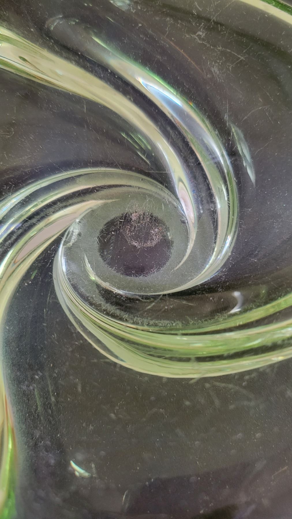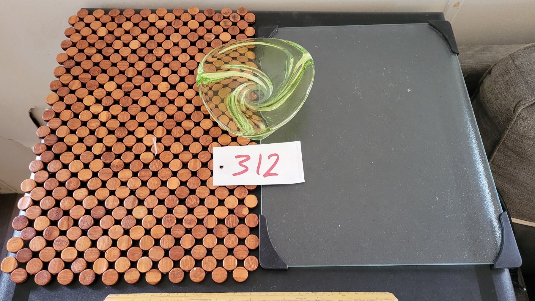 Swirly Decorative Glass Bowl (Depression glass?) and Wood Glass Placemats