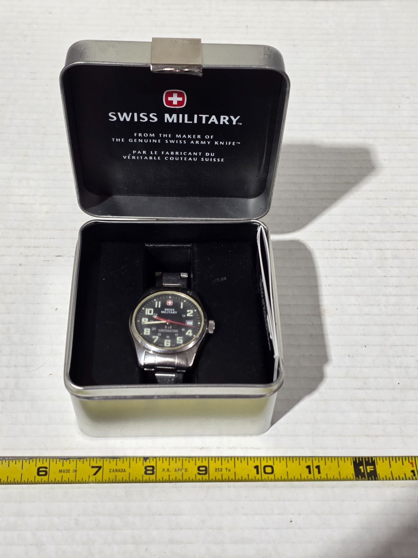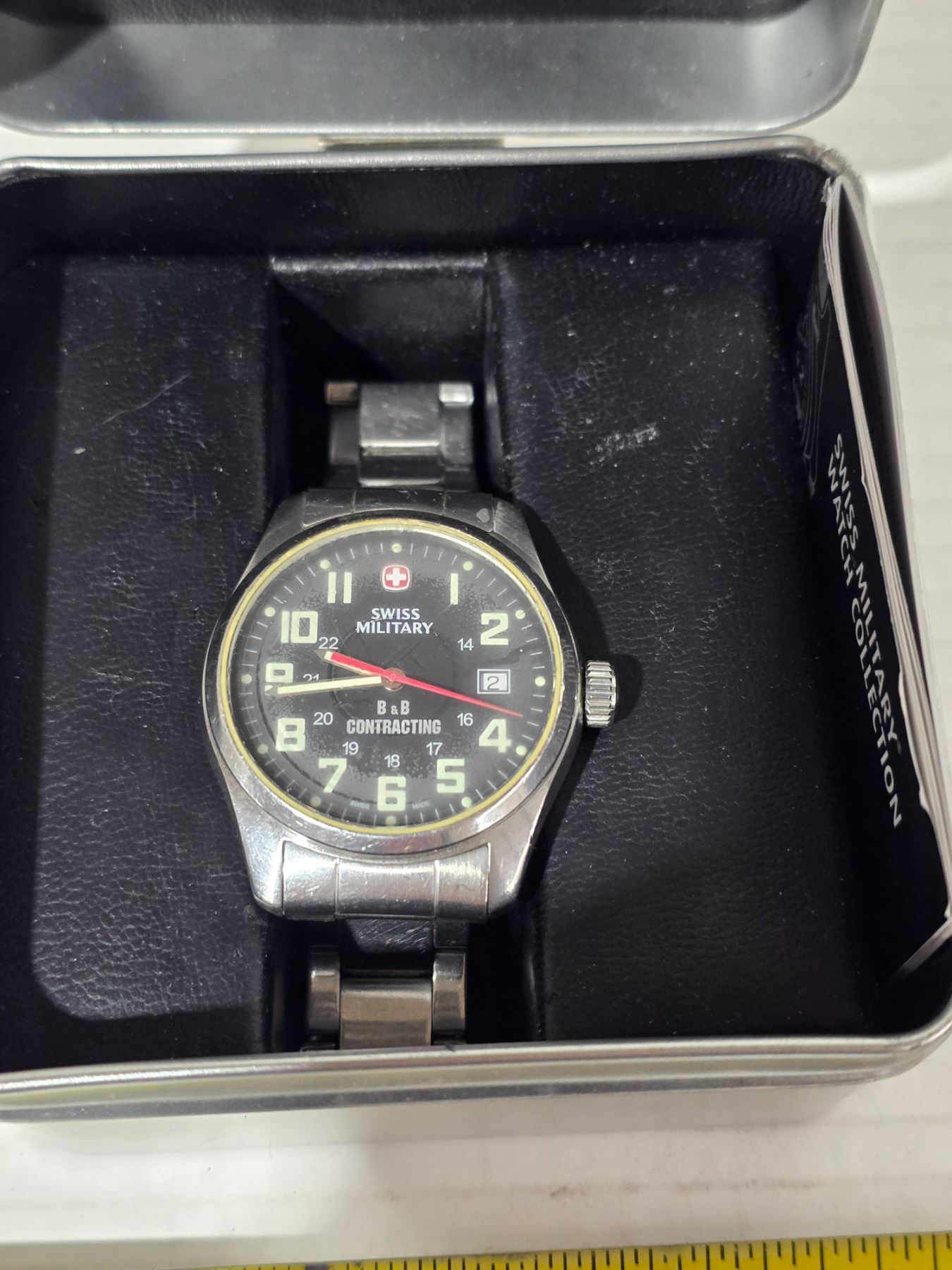 Swiss military wrist watch with case- new battery- works