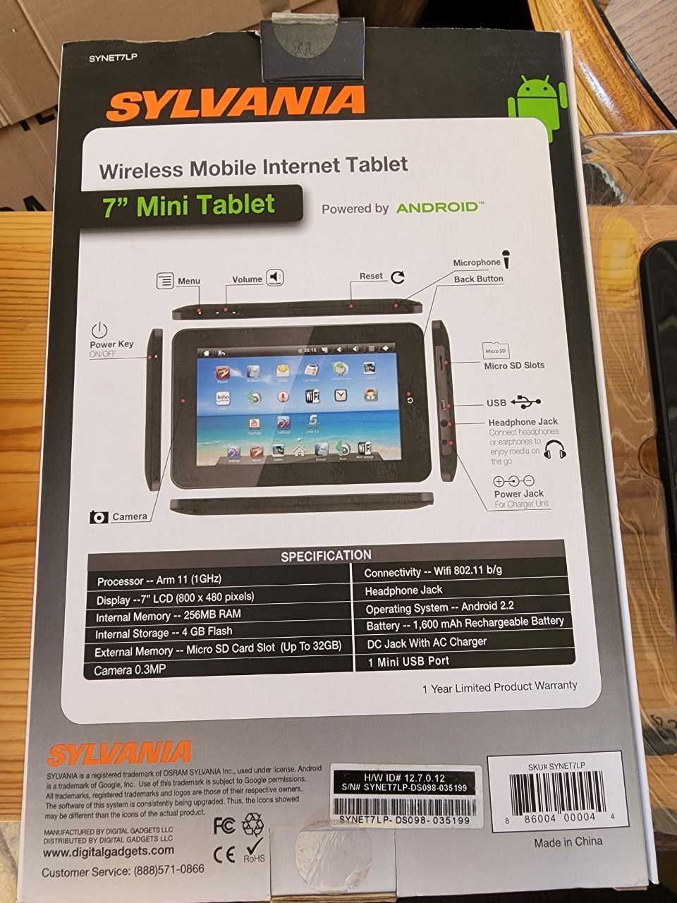 "Sylvania" 7" Mini Tablet, Android 2.2