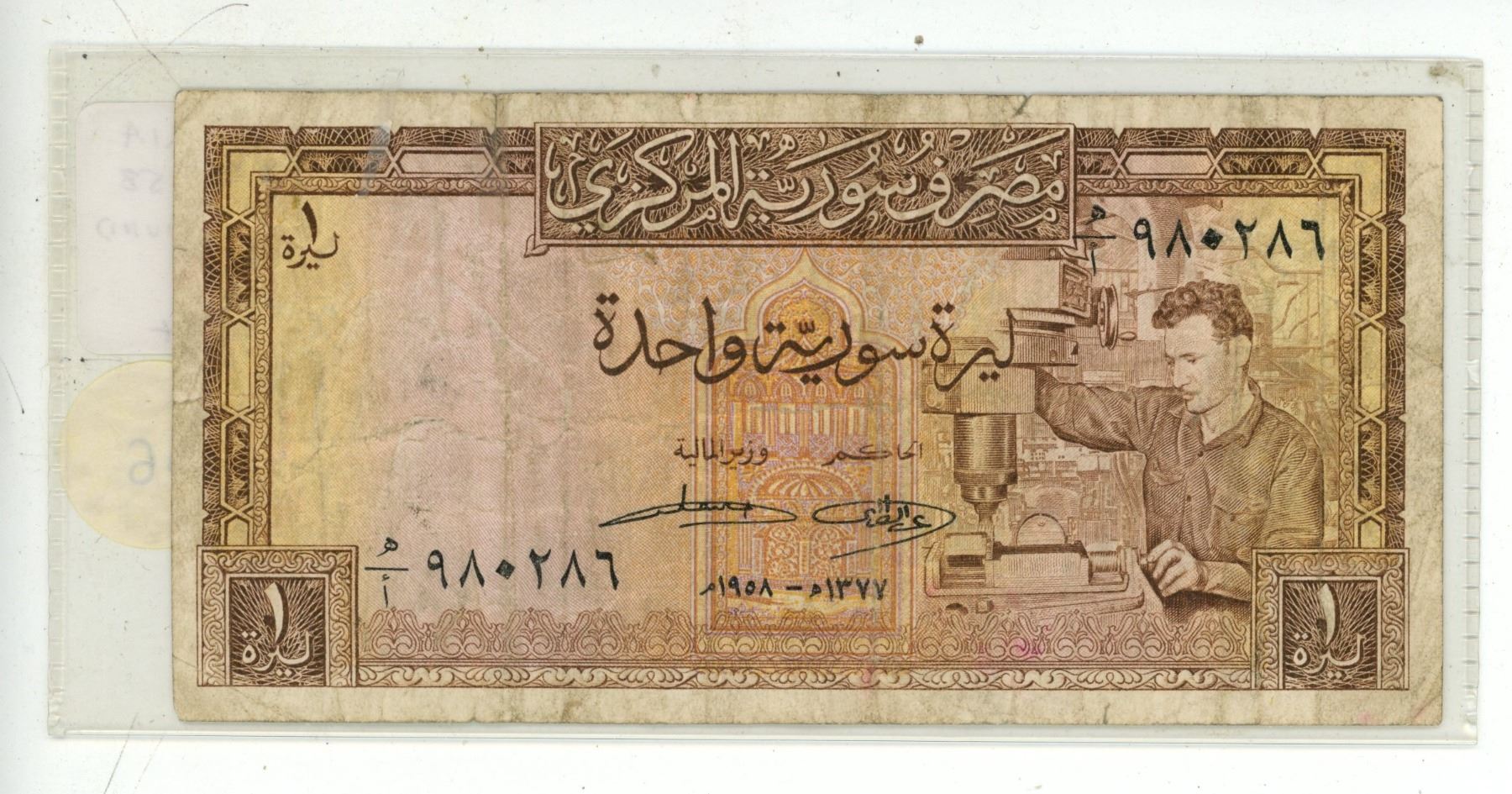 Syria. Central Bank of Syria. 1958 1 Pound. Fine+.