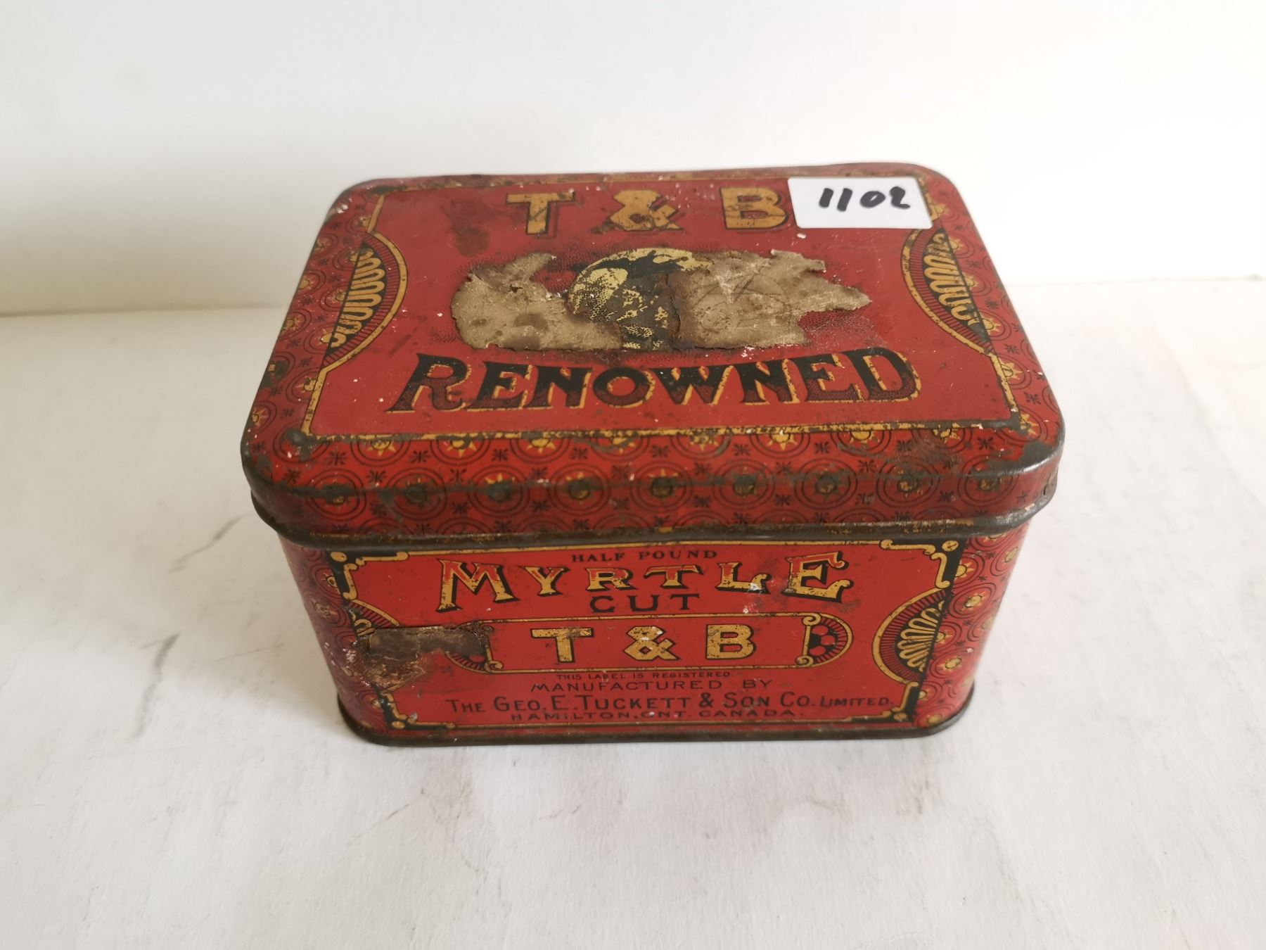 T & B renowned tobacco tin 5x3.5x2.5