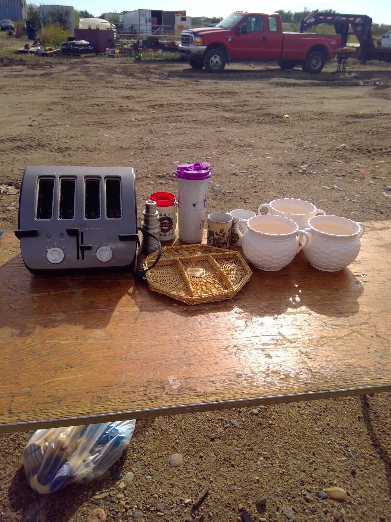 T-FAL TOASTER + COFFEE MUGS +WHITE GLASS CANDY/DISPLAY JARS