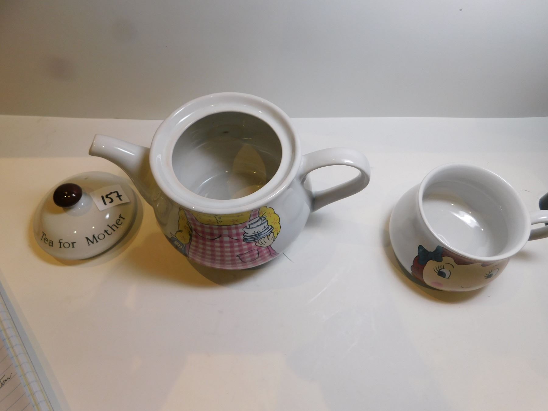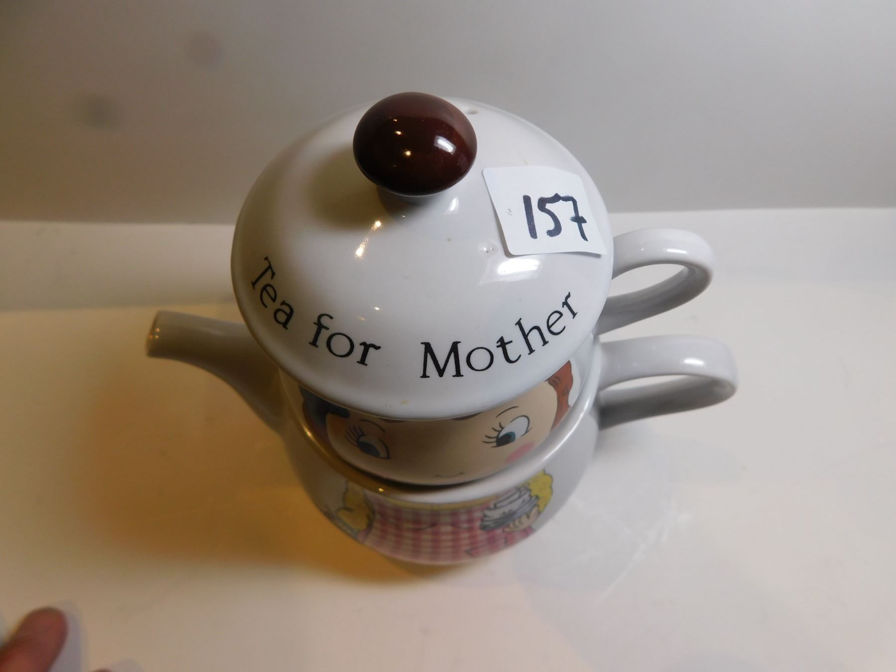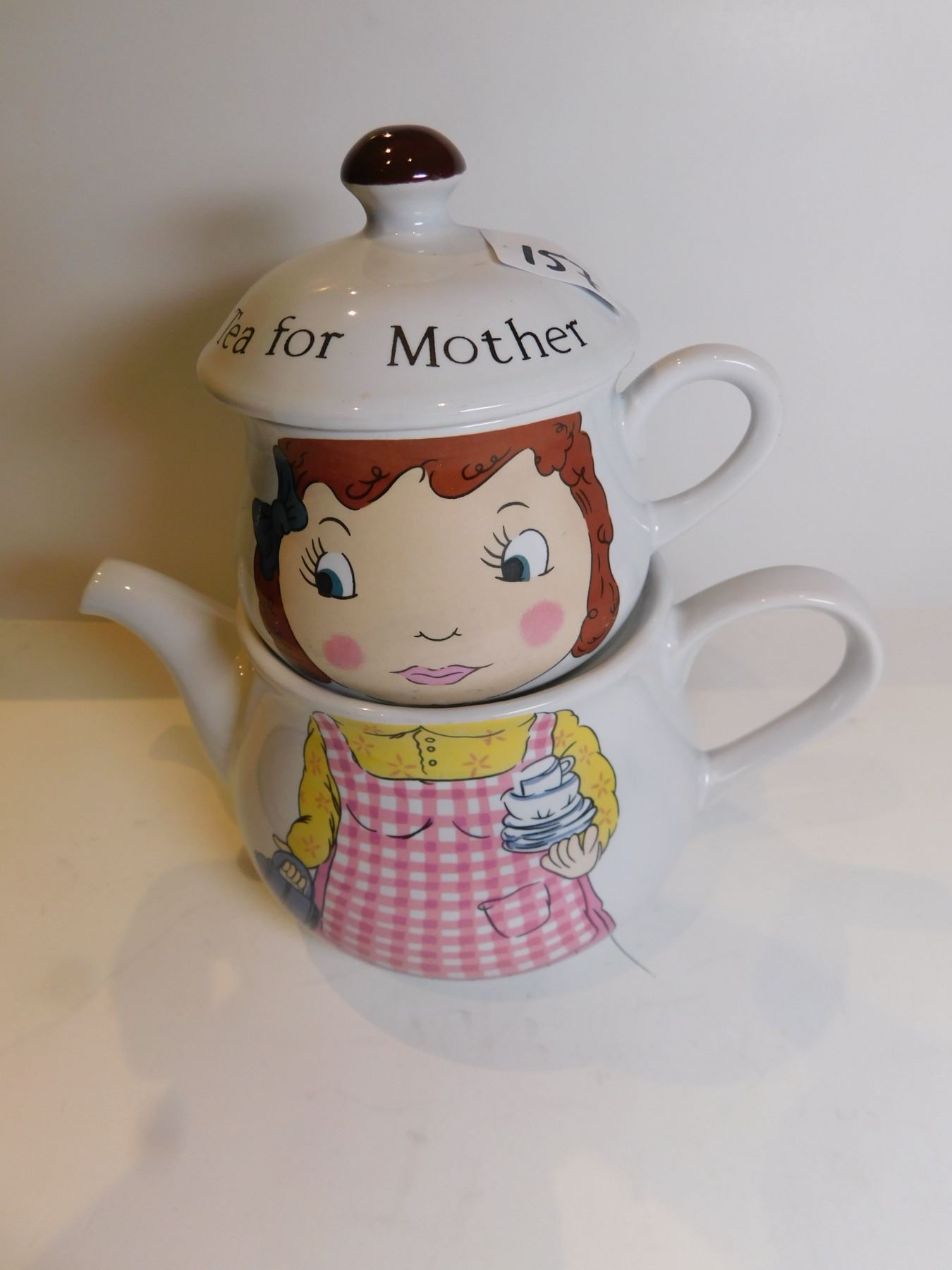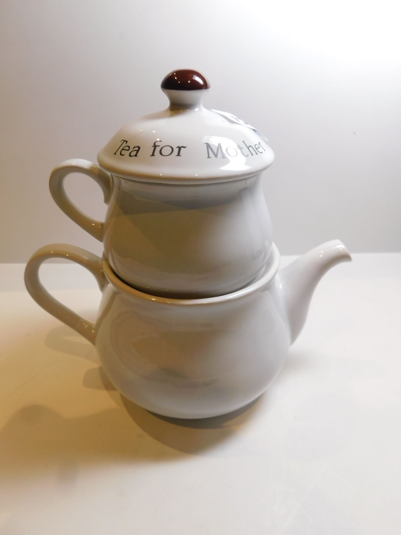 TEA FOR MOTHER CUP AND TEAPOT STACKED, MADE IN KOREA