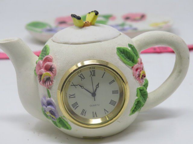 TEA POT, CREAM/SUGAR/PLATTER (TEAPOT W/CLOCK)