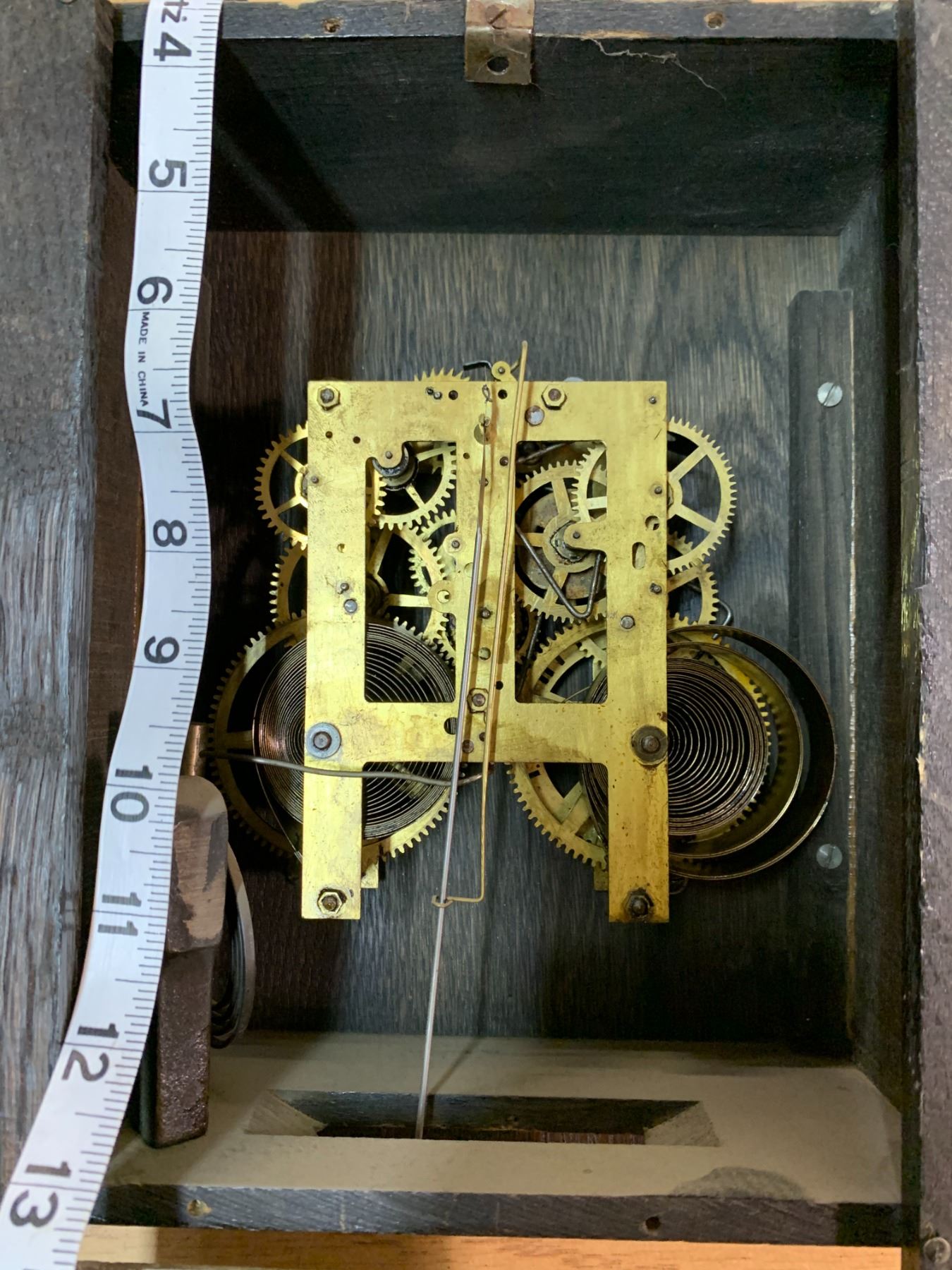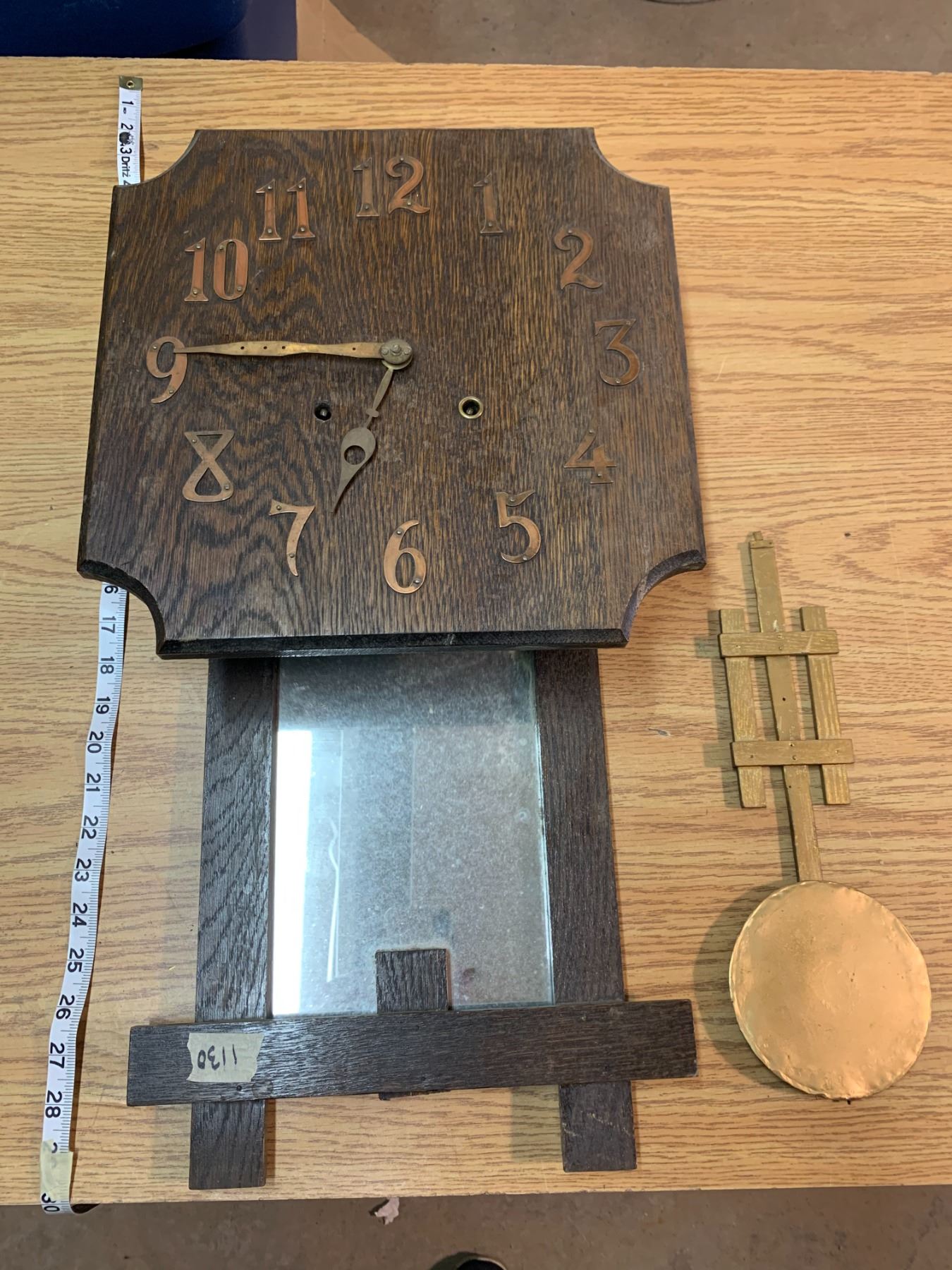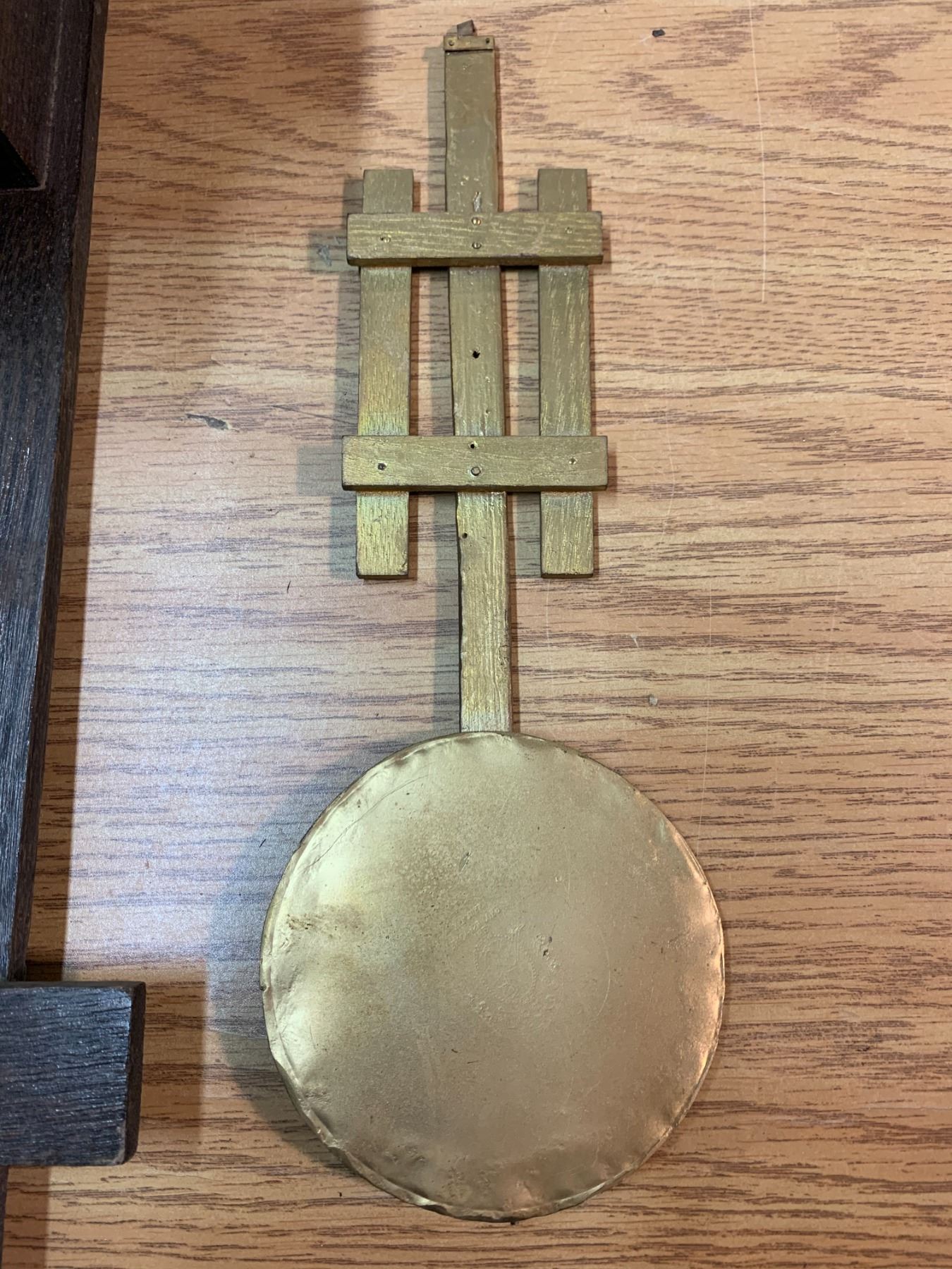 THE REICH-ASH CORP ANTIQUE WOODEN CLOCK W/ PENDULUM AND MIRROR