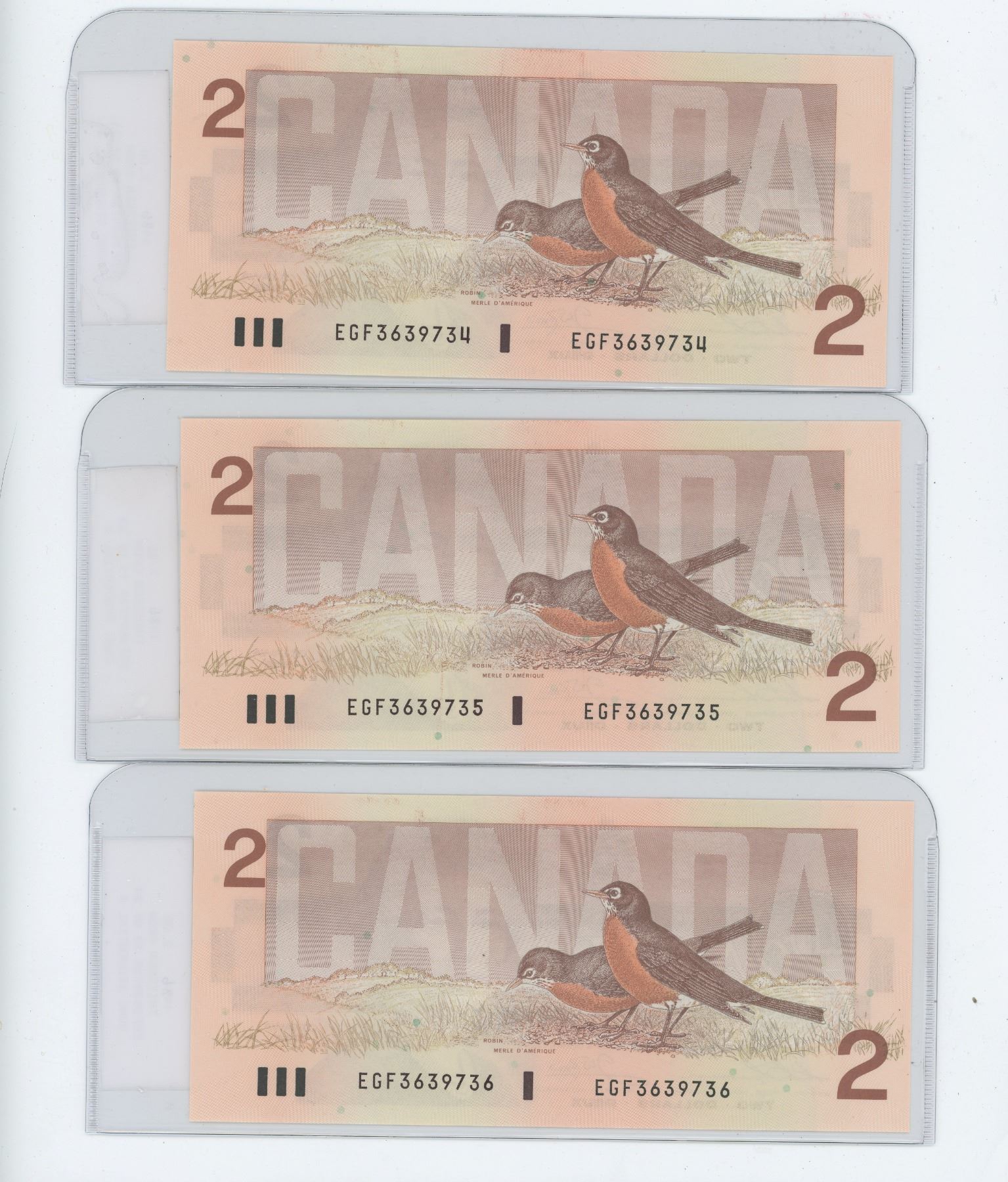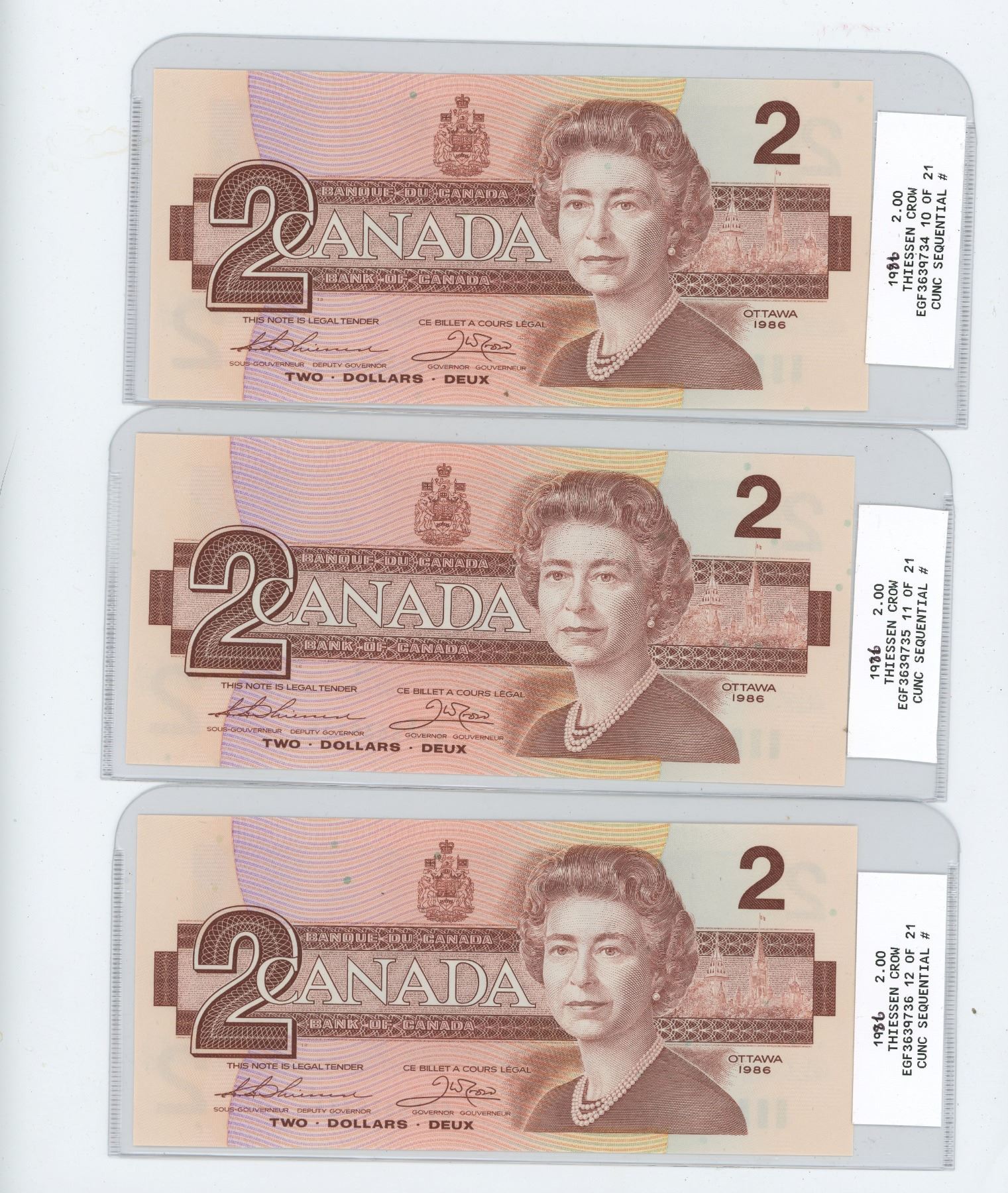 THREE 1986 TWO DOLLAR BILLS (SEQUENTIAL ORDER) *UNCIRCULATED*