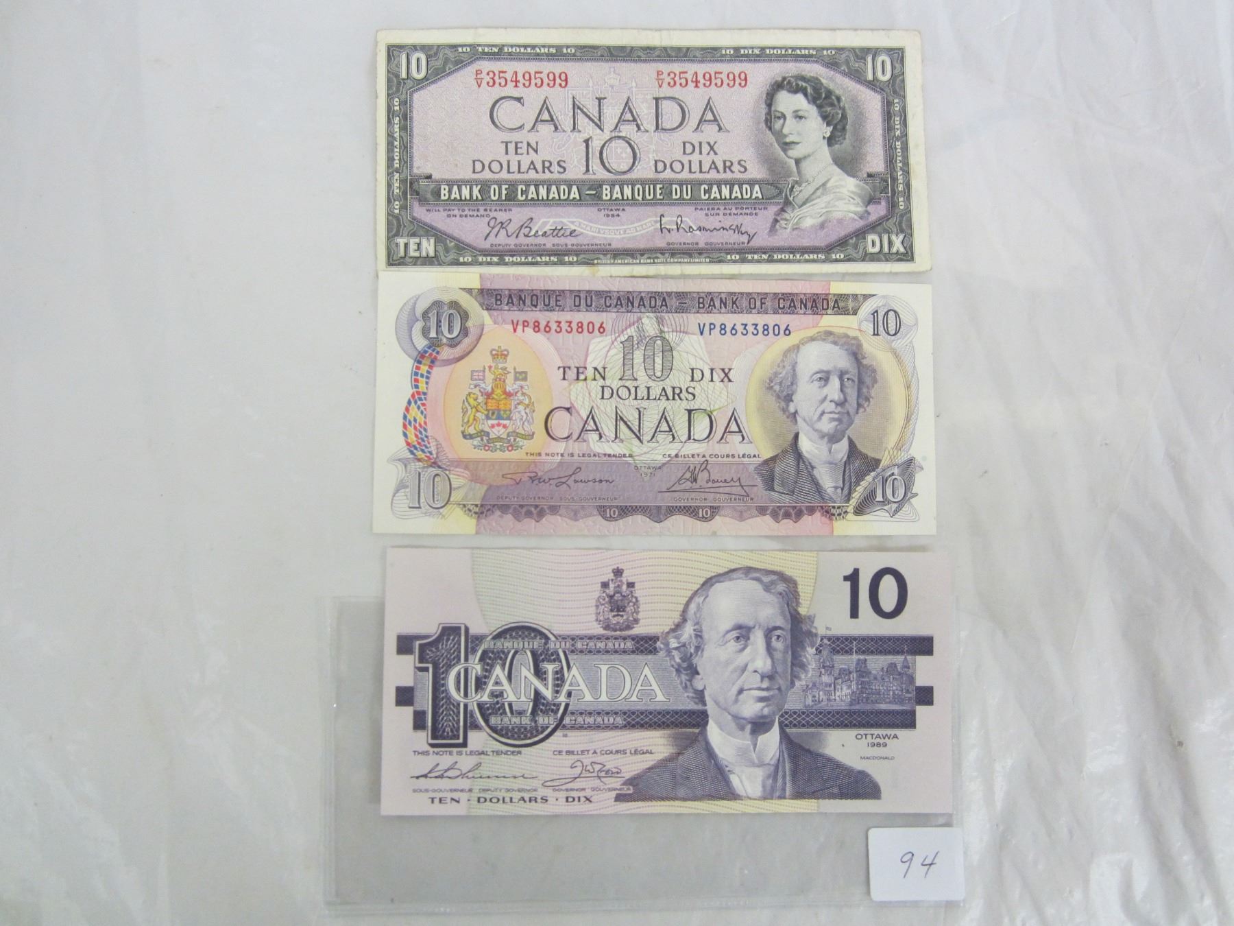 THREE DIFFERENT $10 BILLS (1954, 1971, 1989)