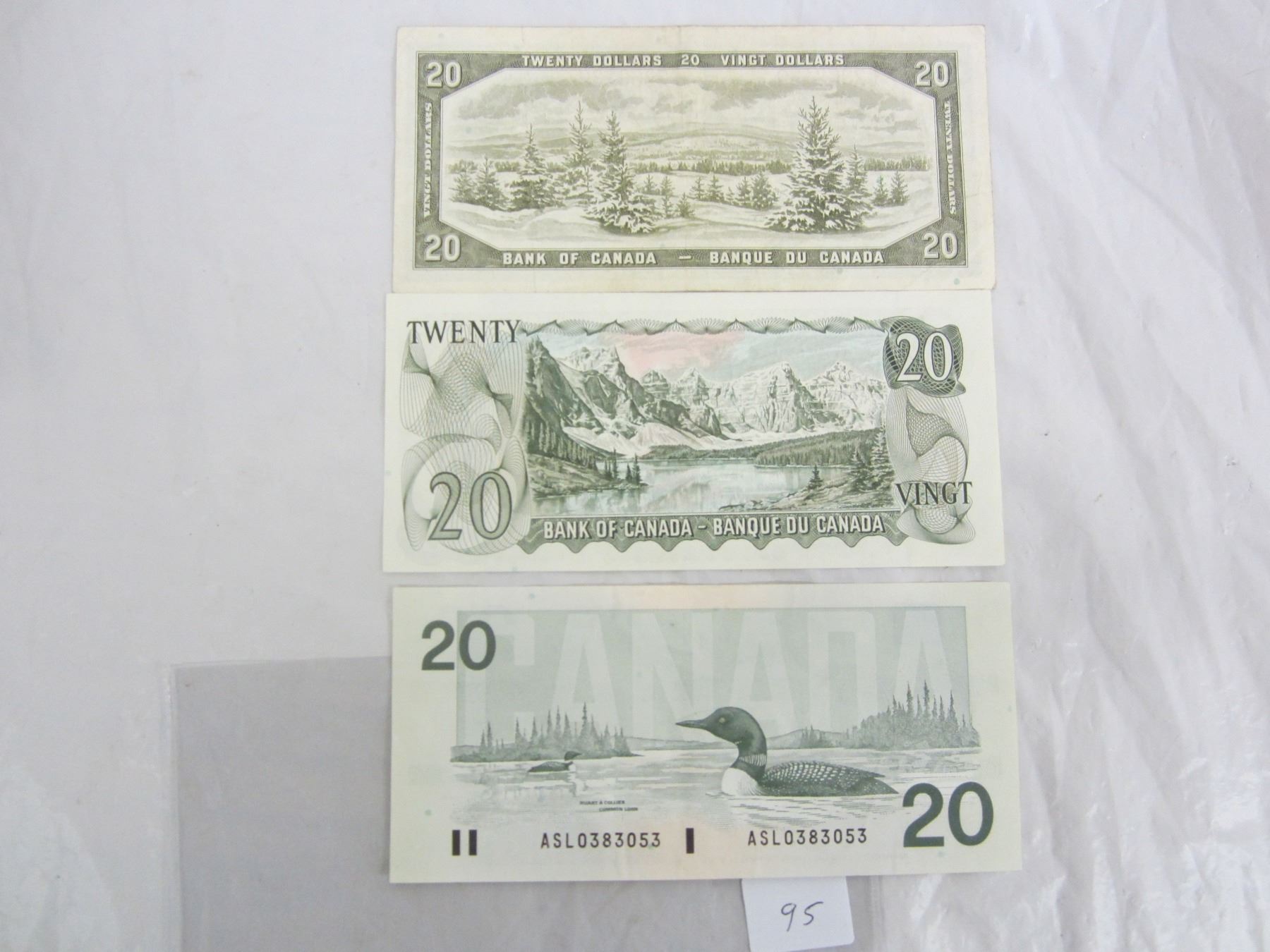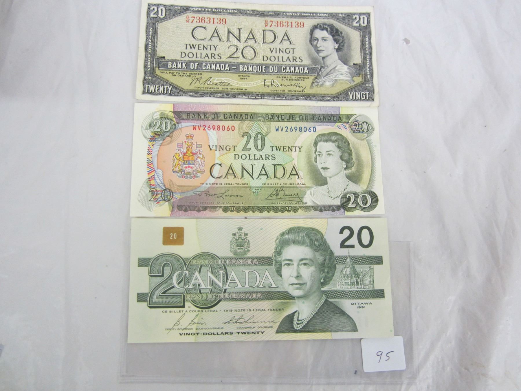 THREE DIFFERENT $20 BILLS (1954, 1969, 1991)