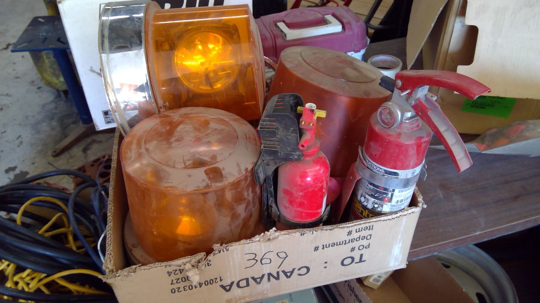 THREE FIRE EXTINGUISHERS, THREE BEACON LIGHTS