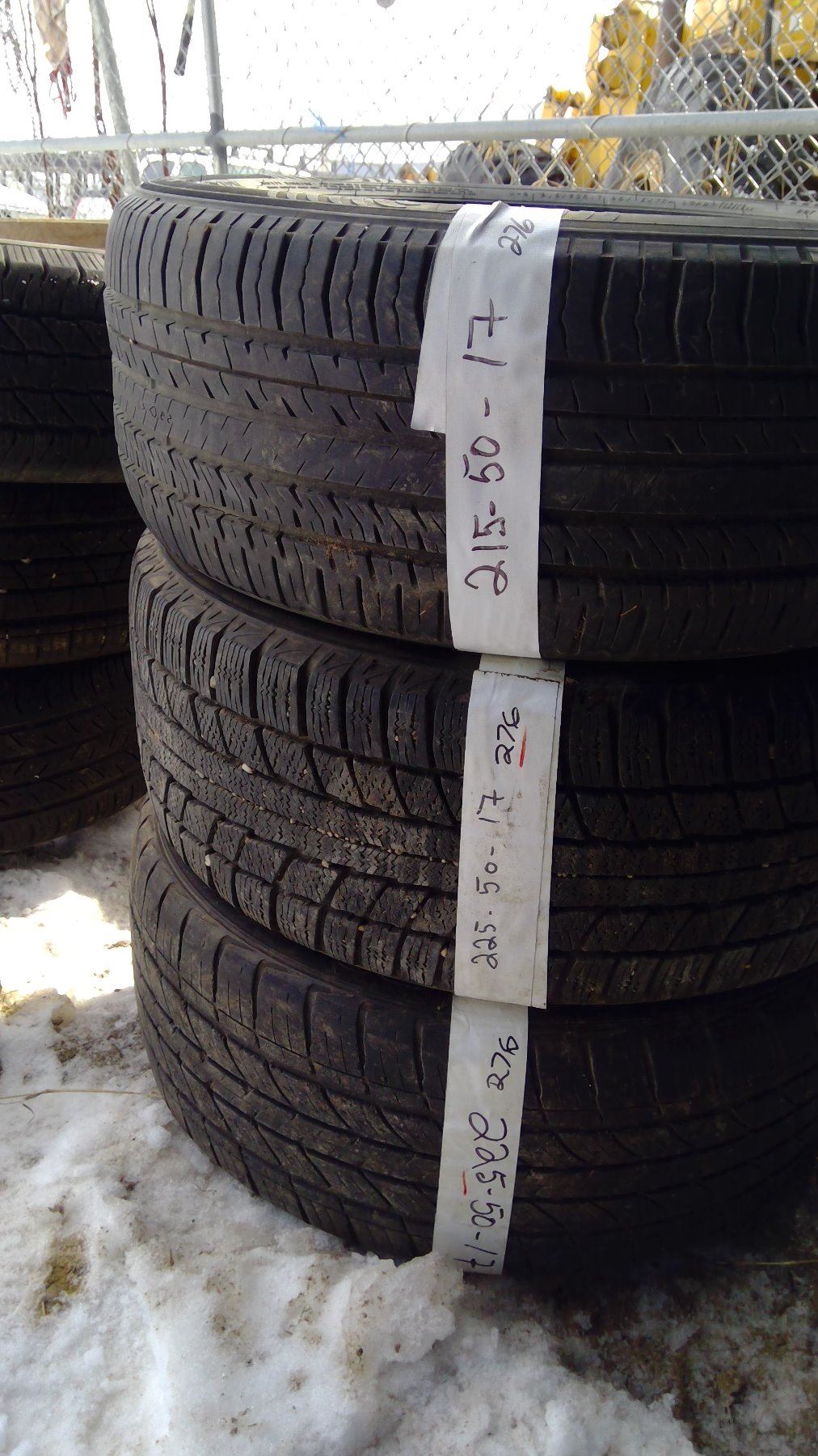 THREE MISMATCHED TIRES, 215-50-17, TWO 225-50-17
