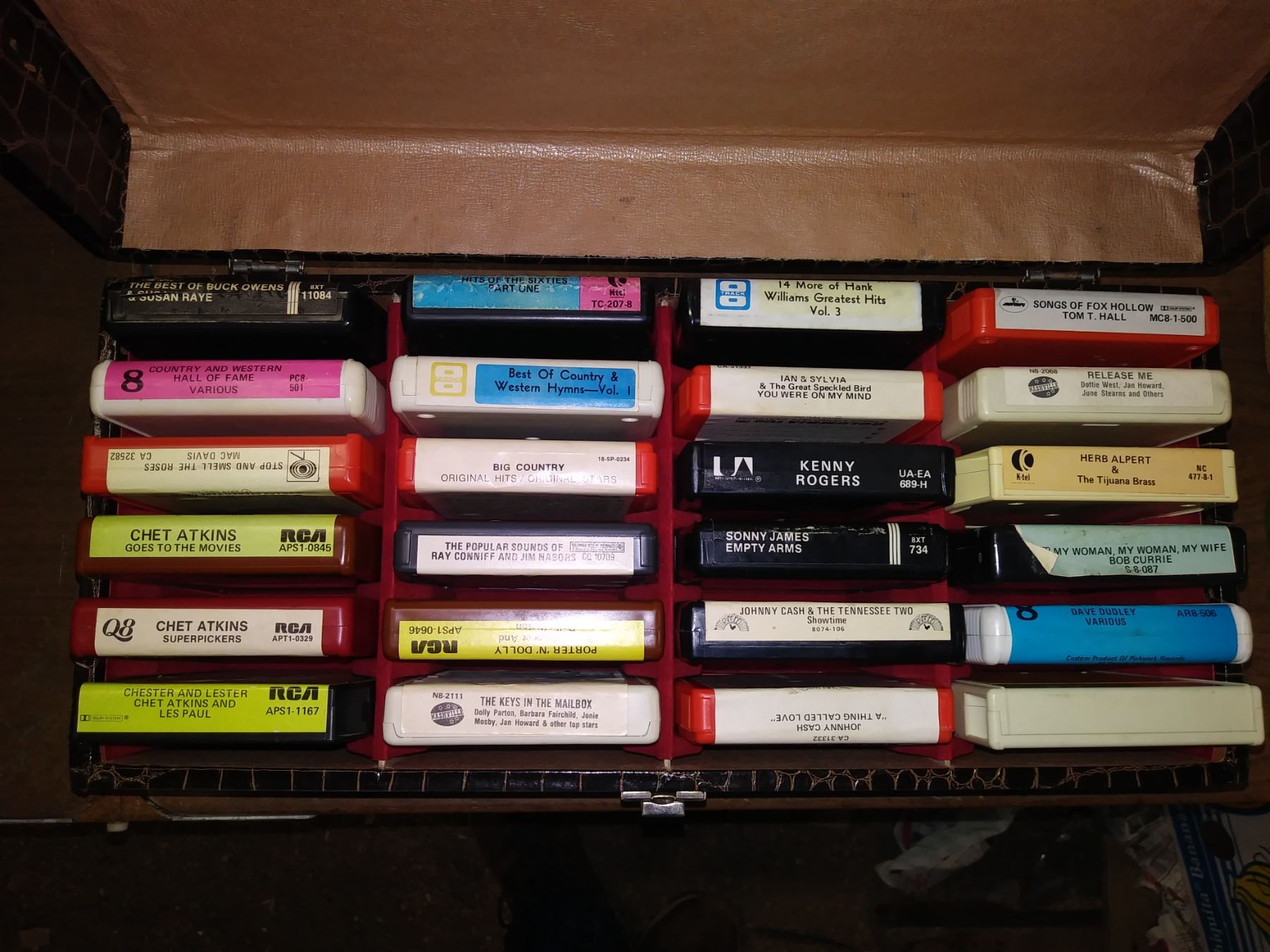 THREE TAPE CASES (2 W/ 8 TRACKS & 1 W/ CASSETTES)
