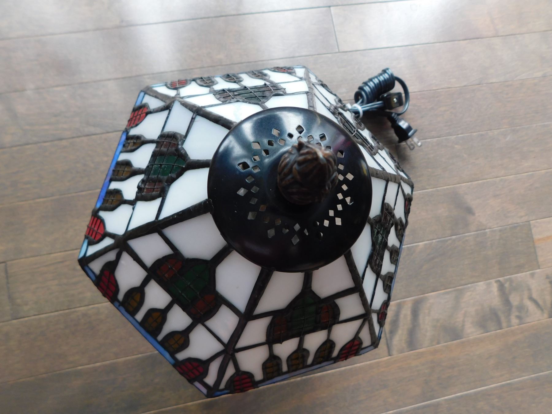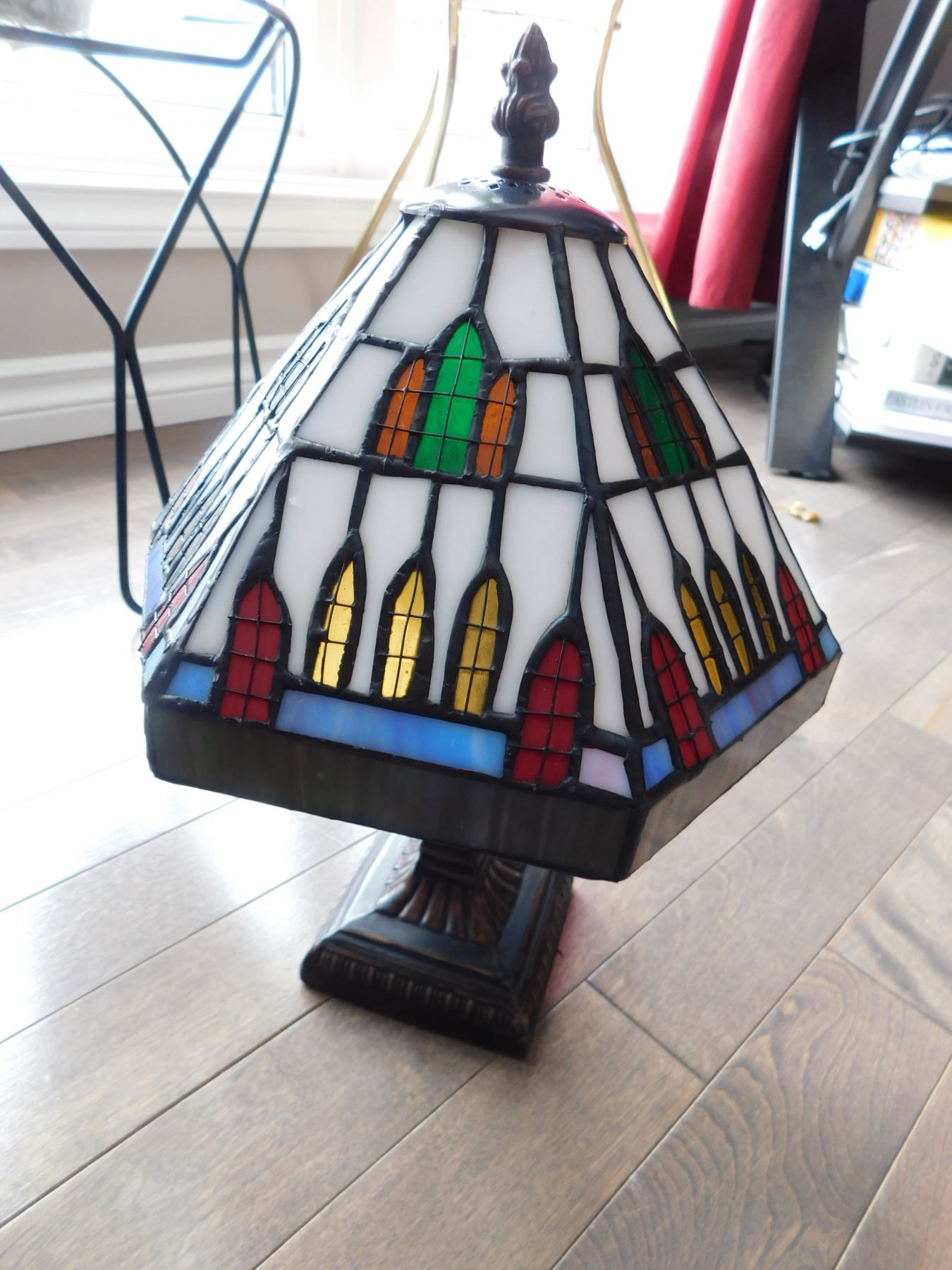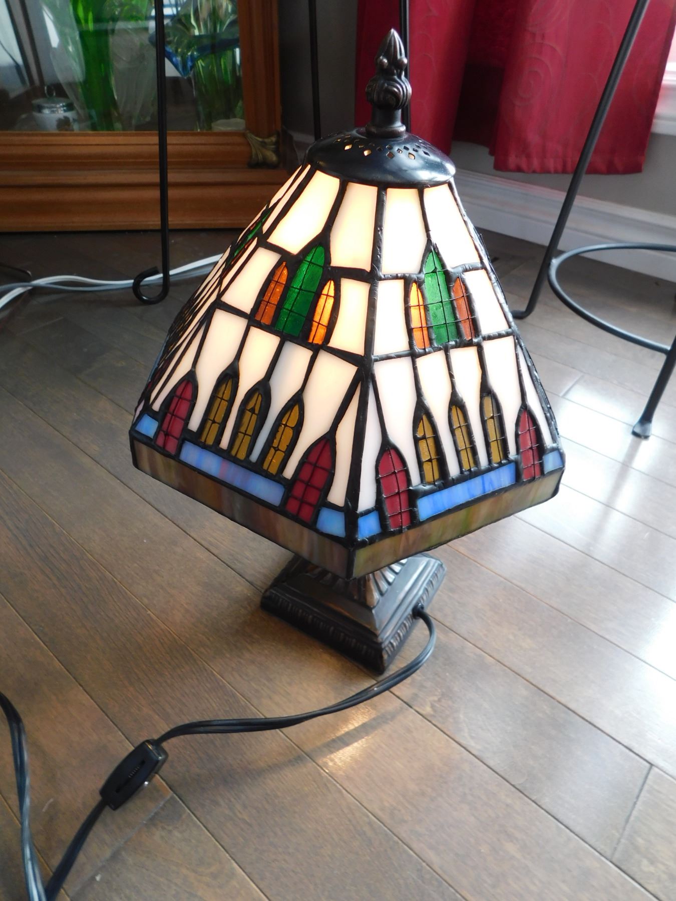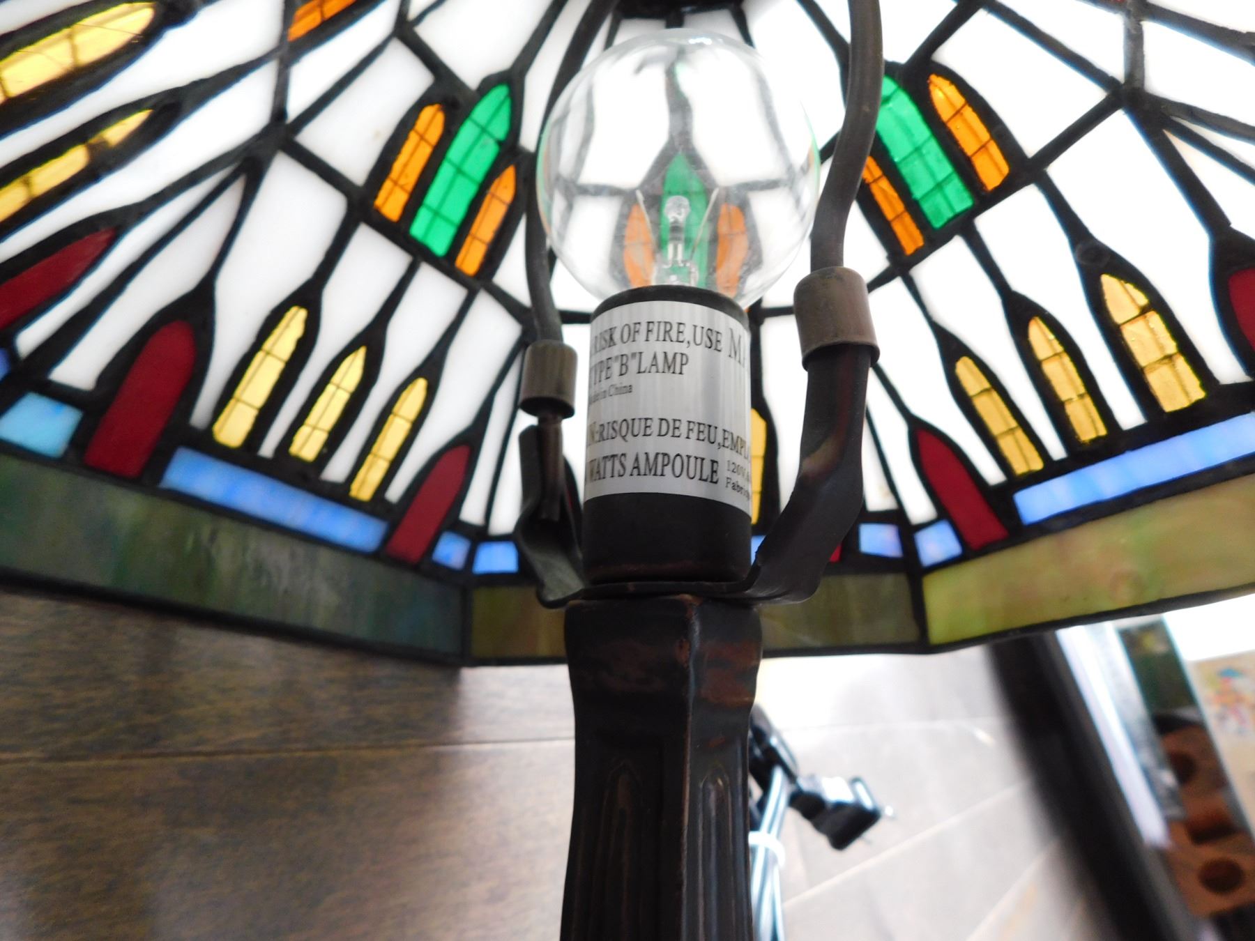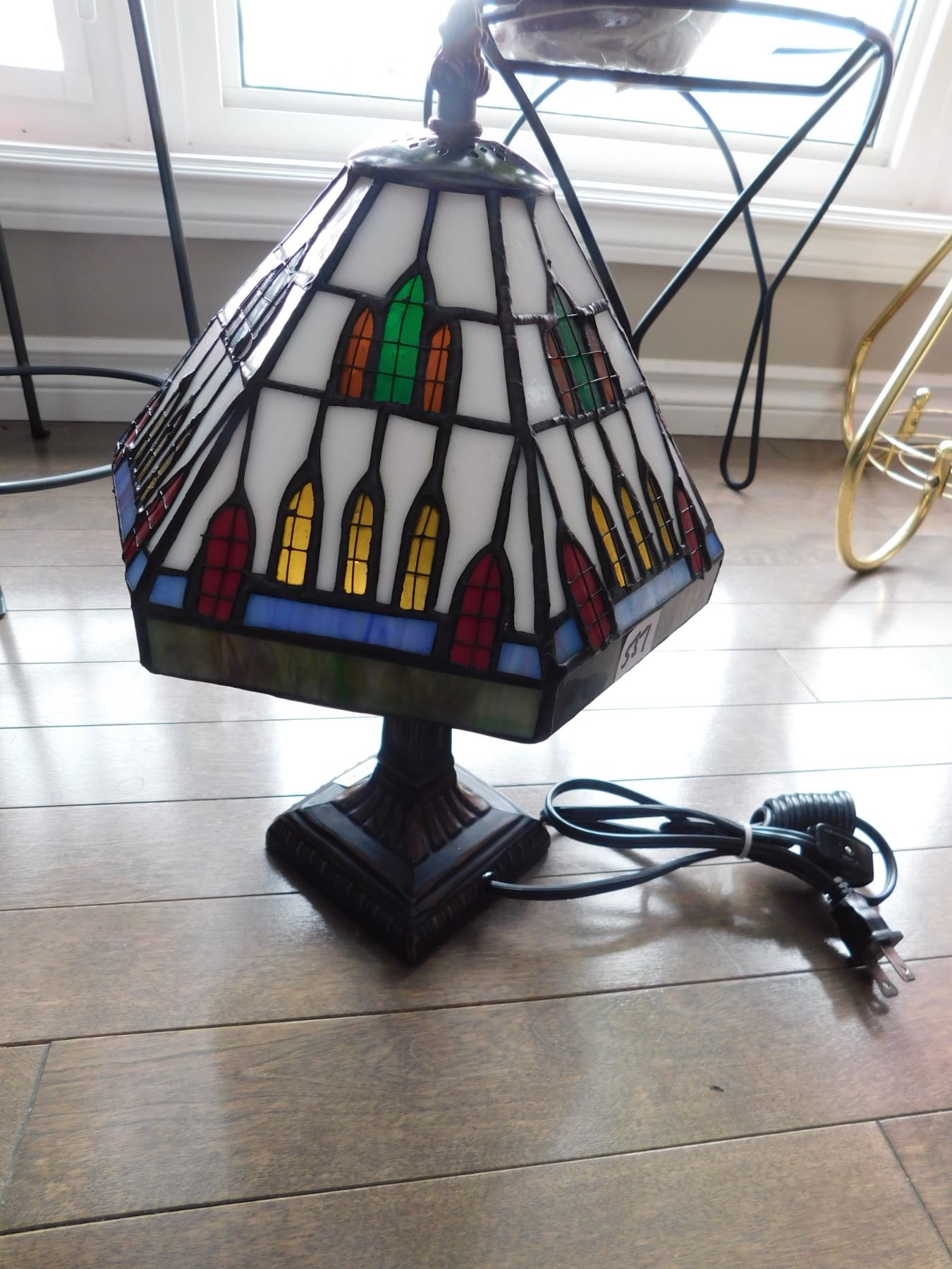 TIFFANY STYLE LAMP, PADDLE DESIGN, 13 ¾ “TALL, WORKS