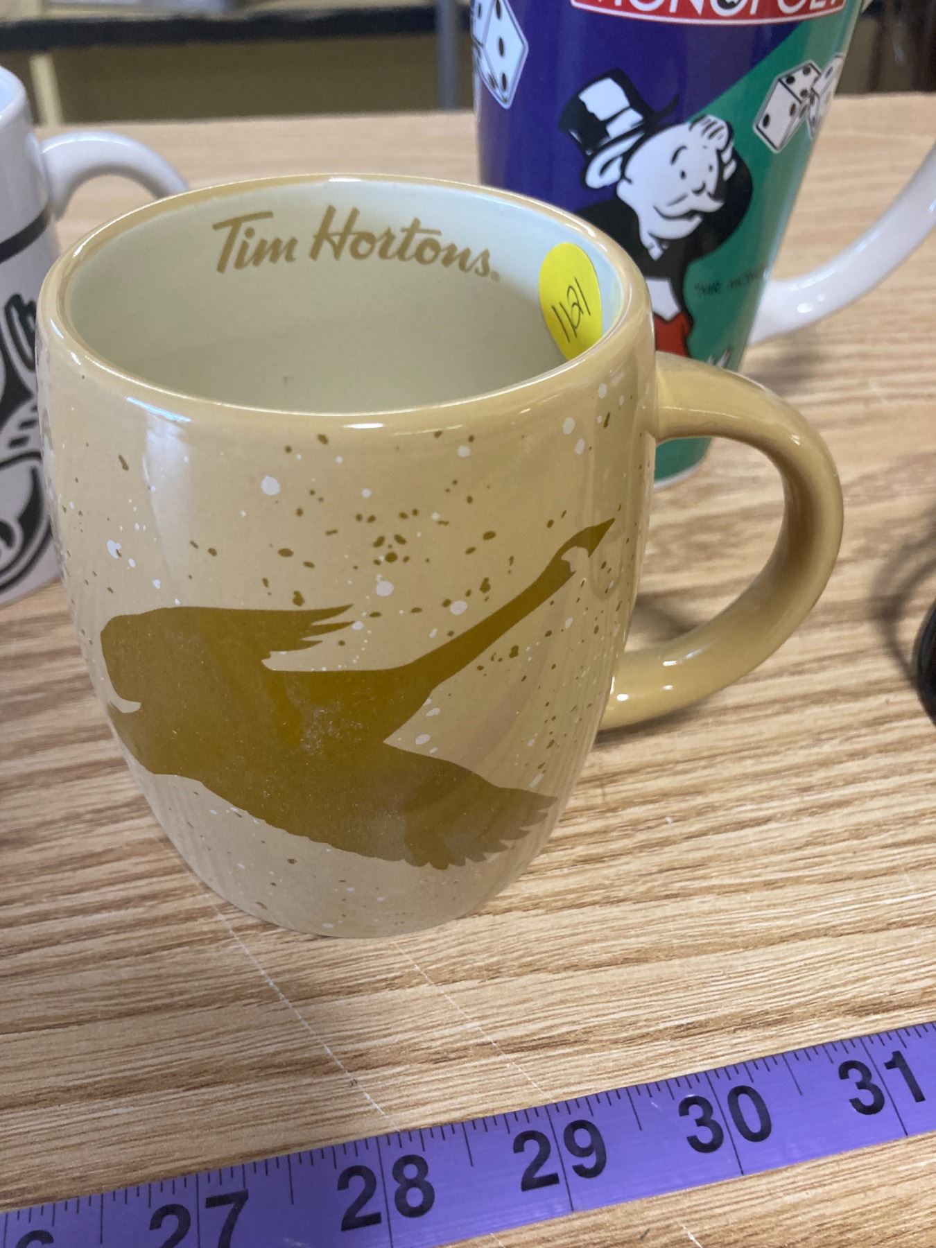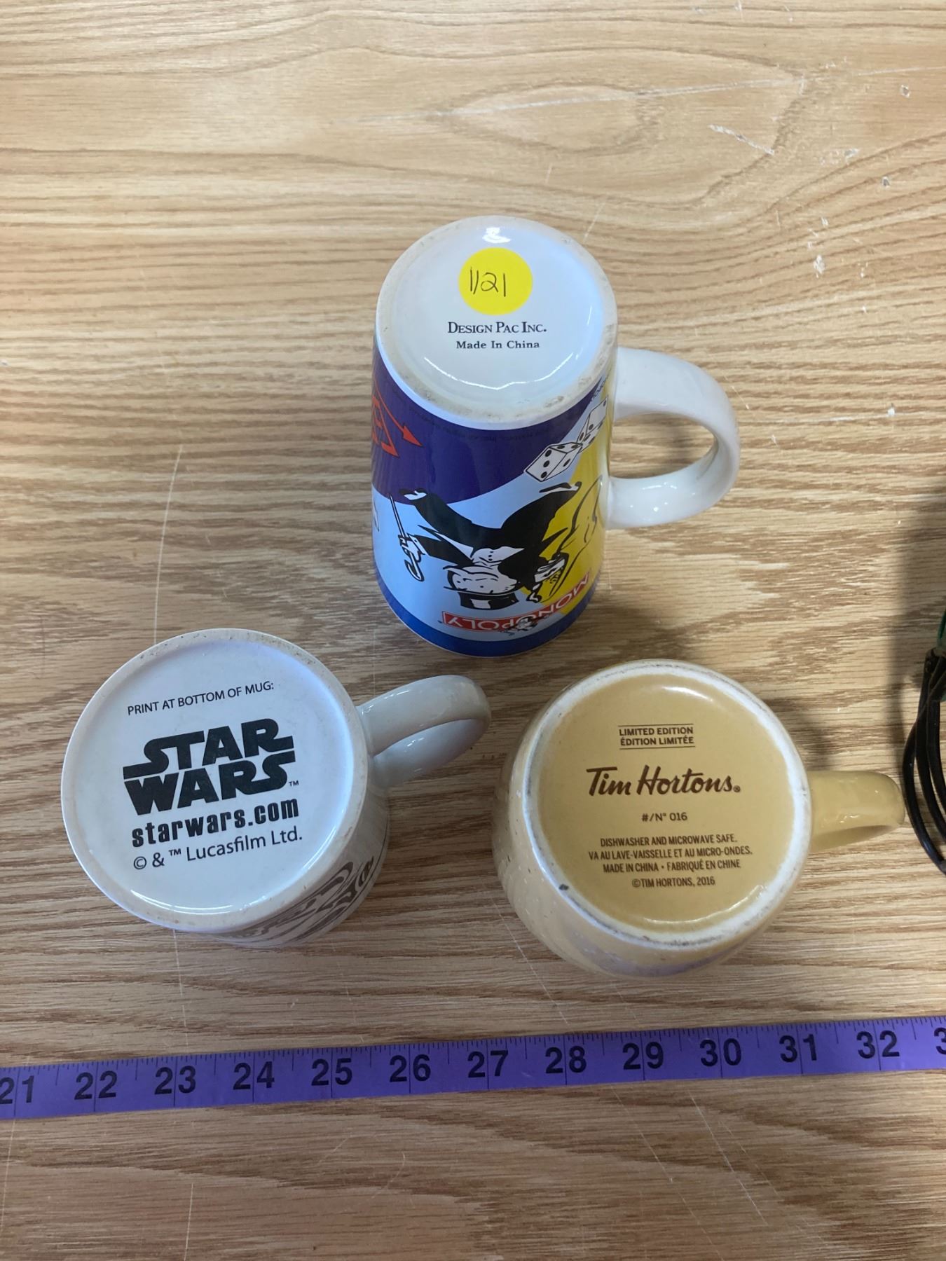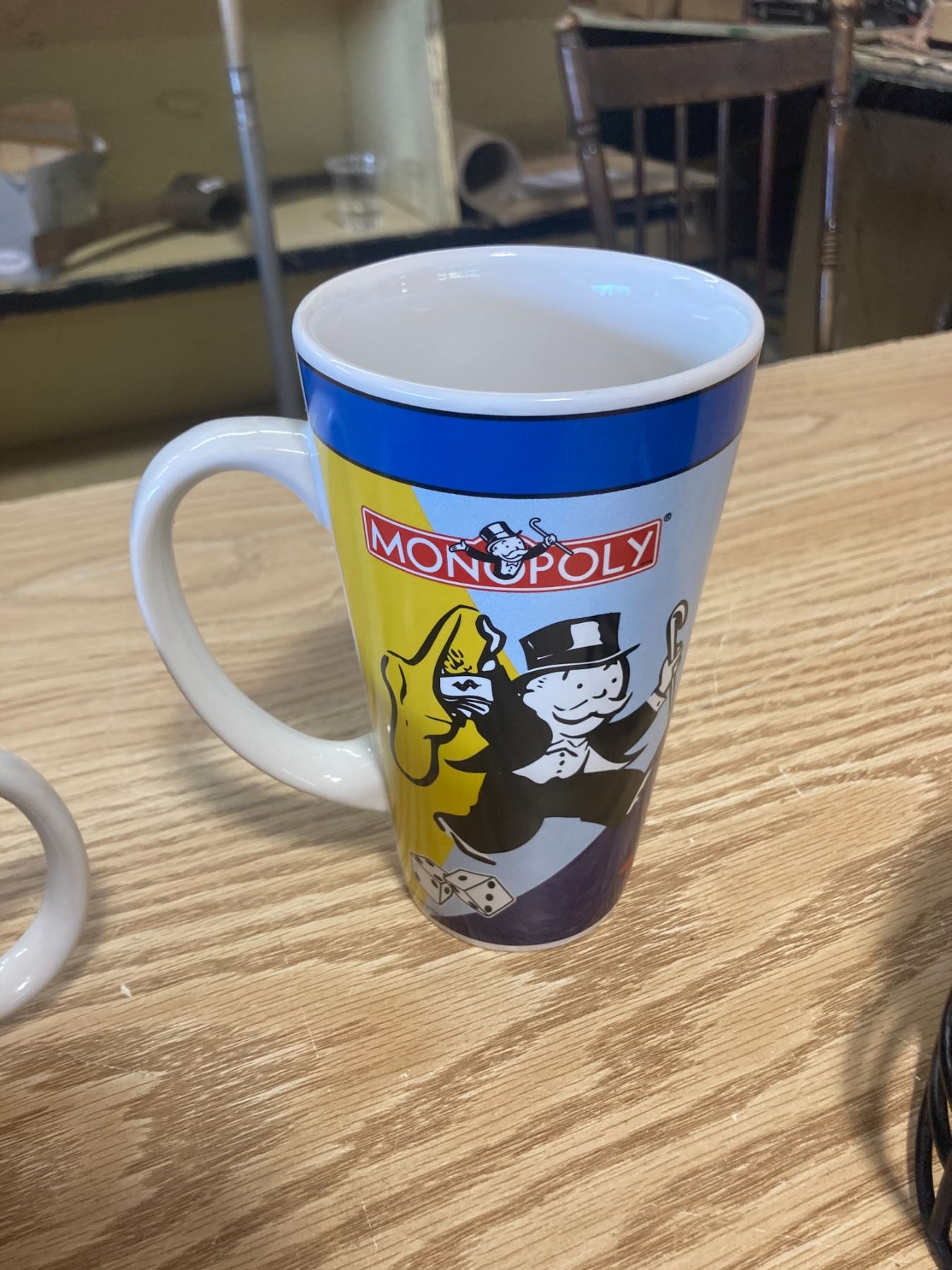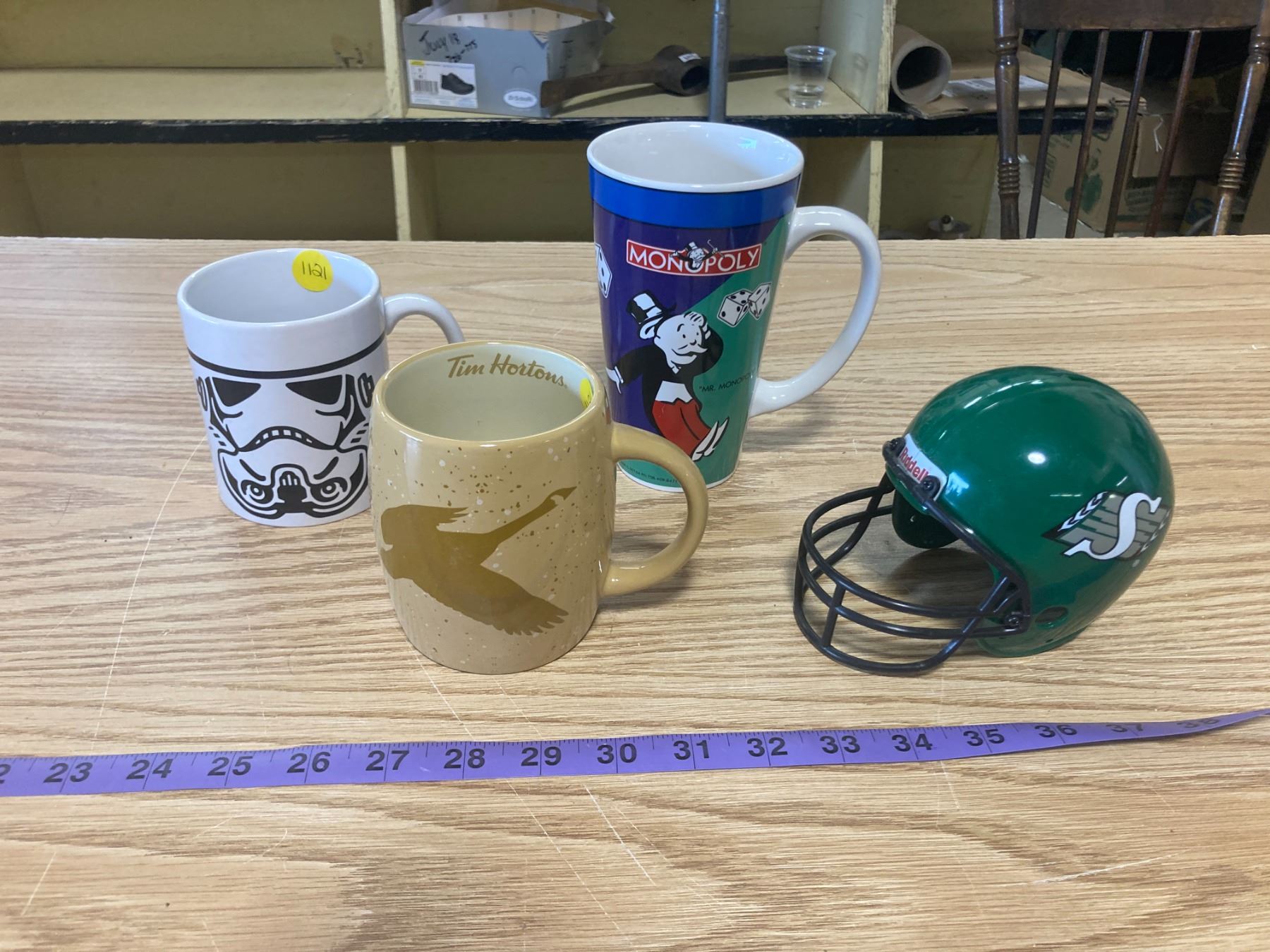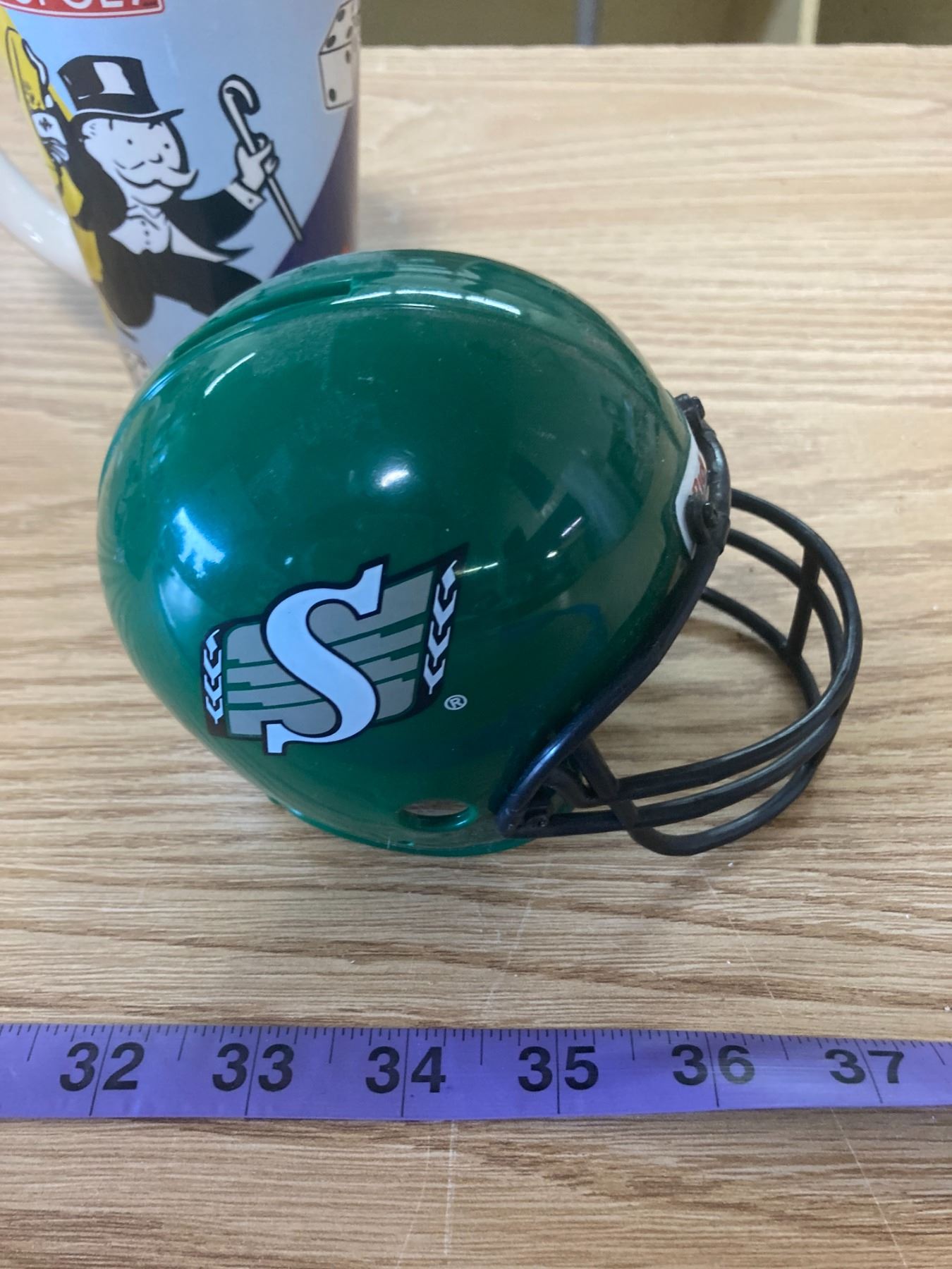 TIM HORTON MUG + STAR WARS MUG + MONOPOLY MUG + ROUGH RIDER PIGGY BANK PLASTIC HELMET