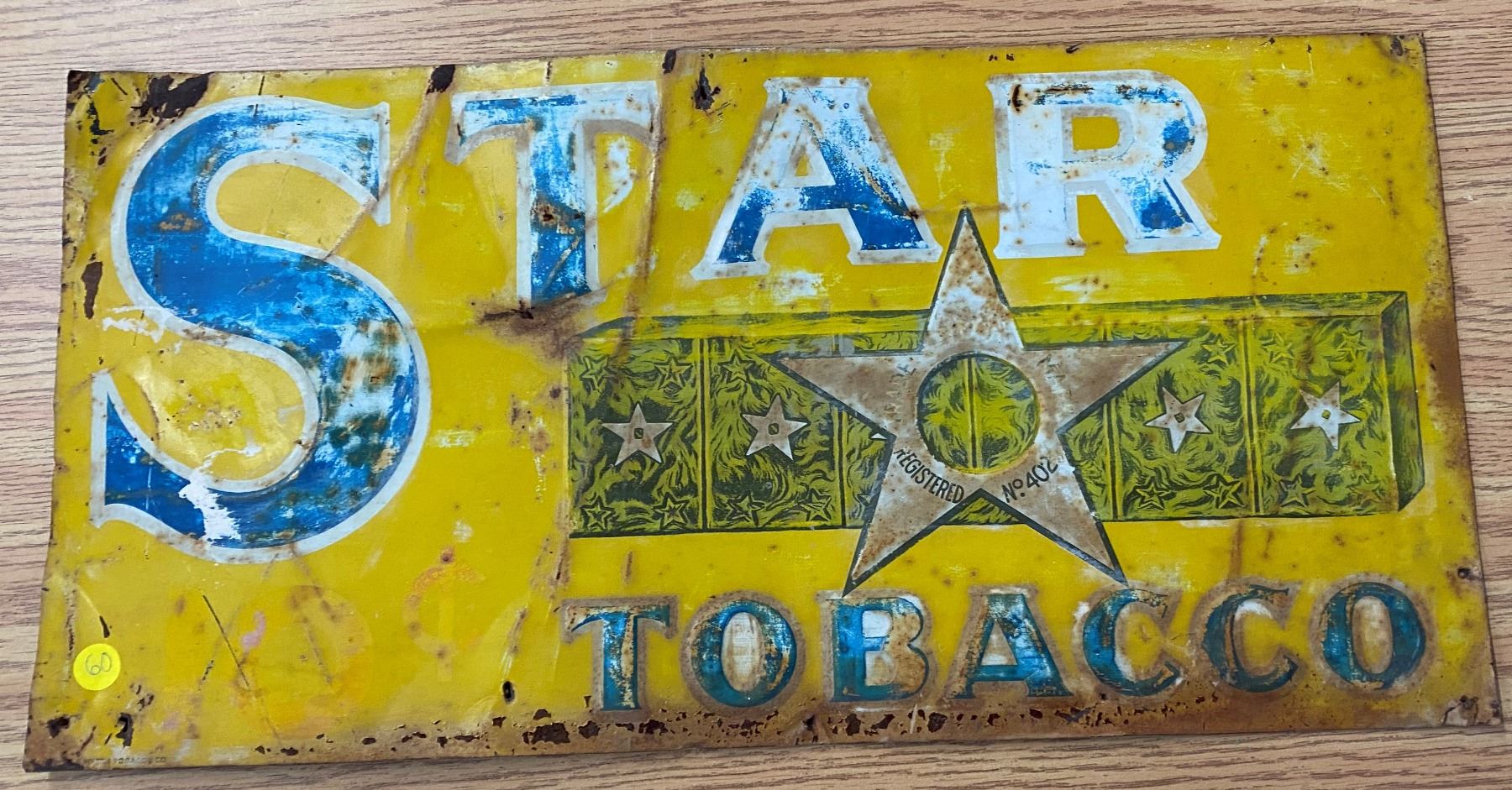 TIN "STAR TOBACCO" SIGN 2"X1"