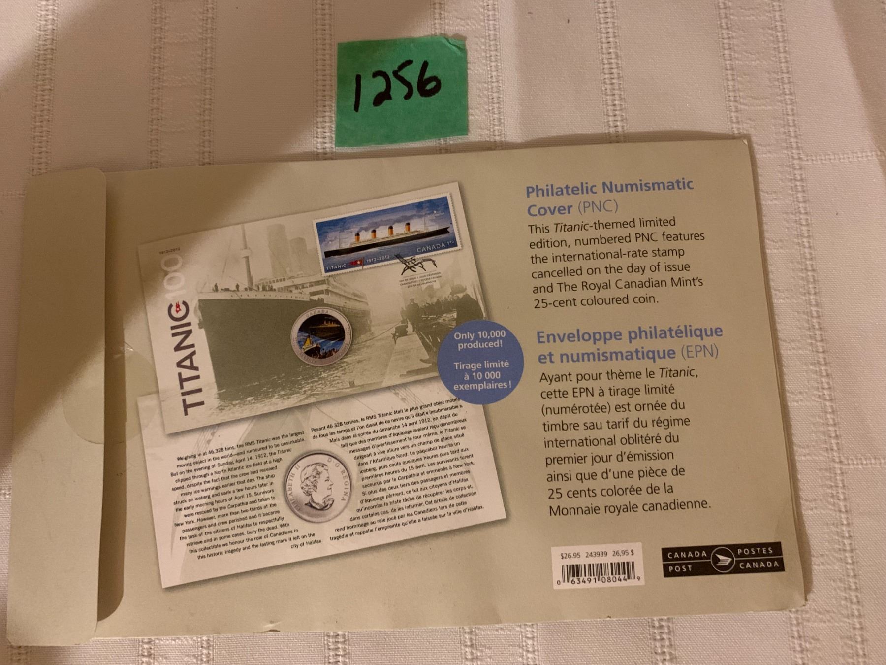 TITANIC 100 ANNIVERSARY COLORED OVERSIZE QUARTER 1912-2012 PHILATELIC NUMISMATIC COVER SET