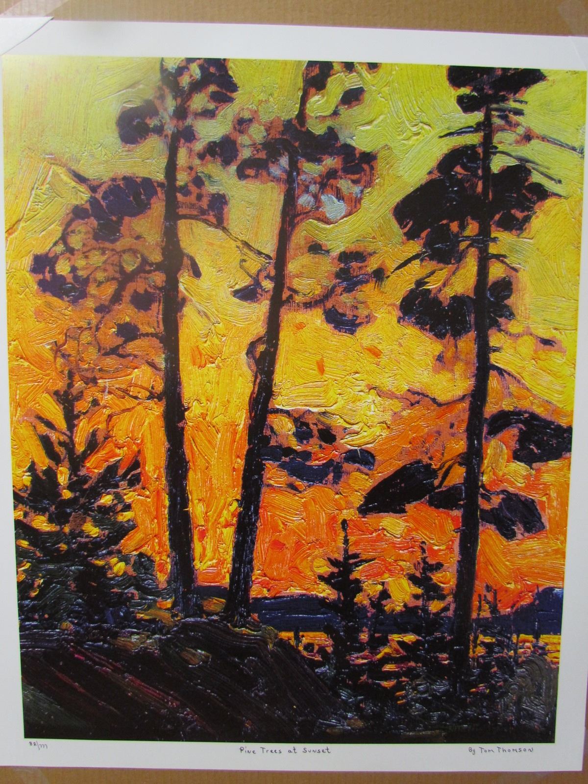TOM THOMPSON, GROUP OF SEVEN, LTD EDITION PRINT. "TREES AT SUNSET" 82/777