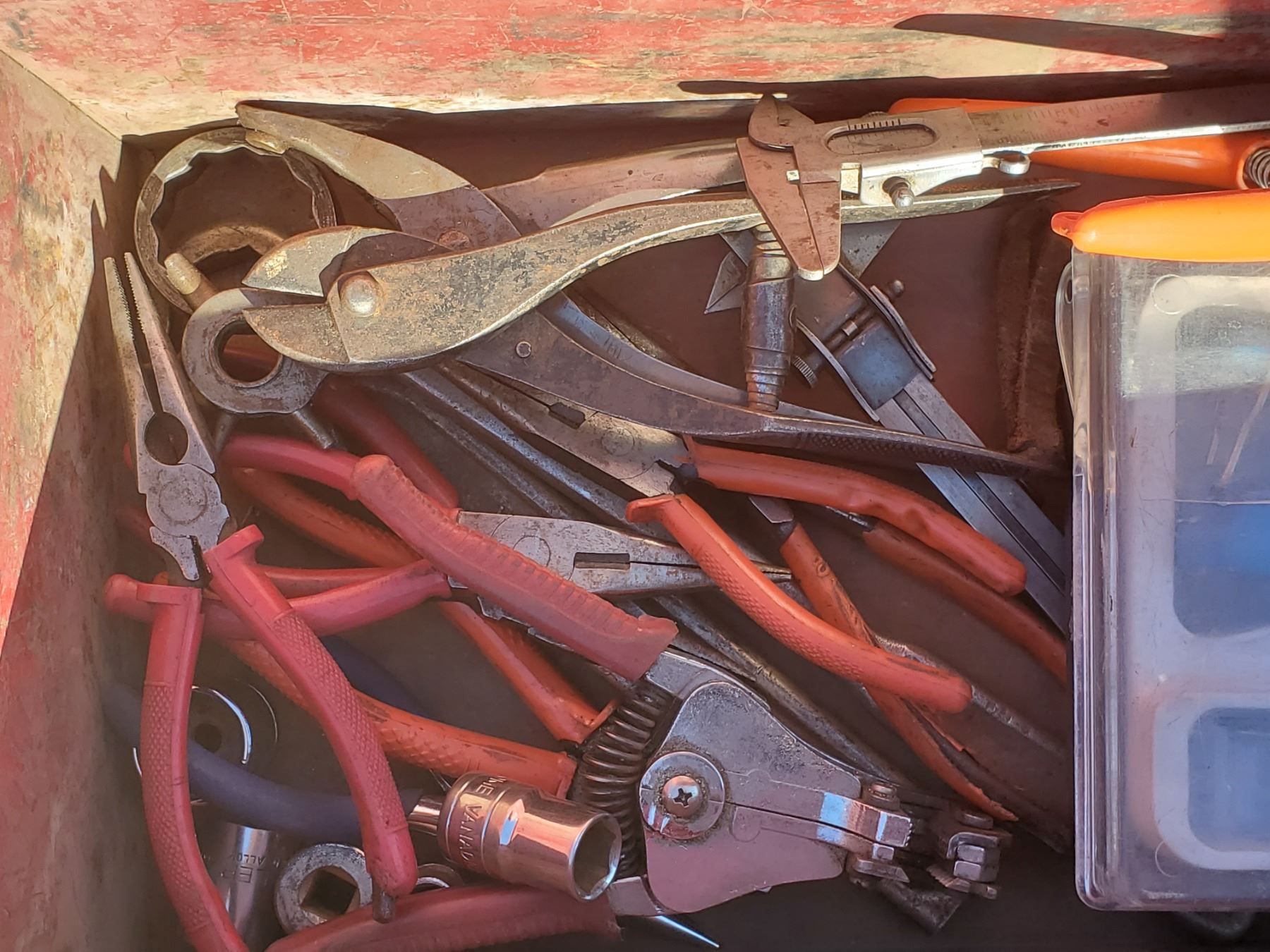 TOOL BOX COMES WITH RIVETER, PLIERS, SIDE CUTTER