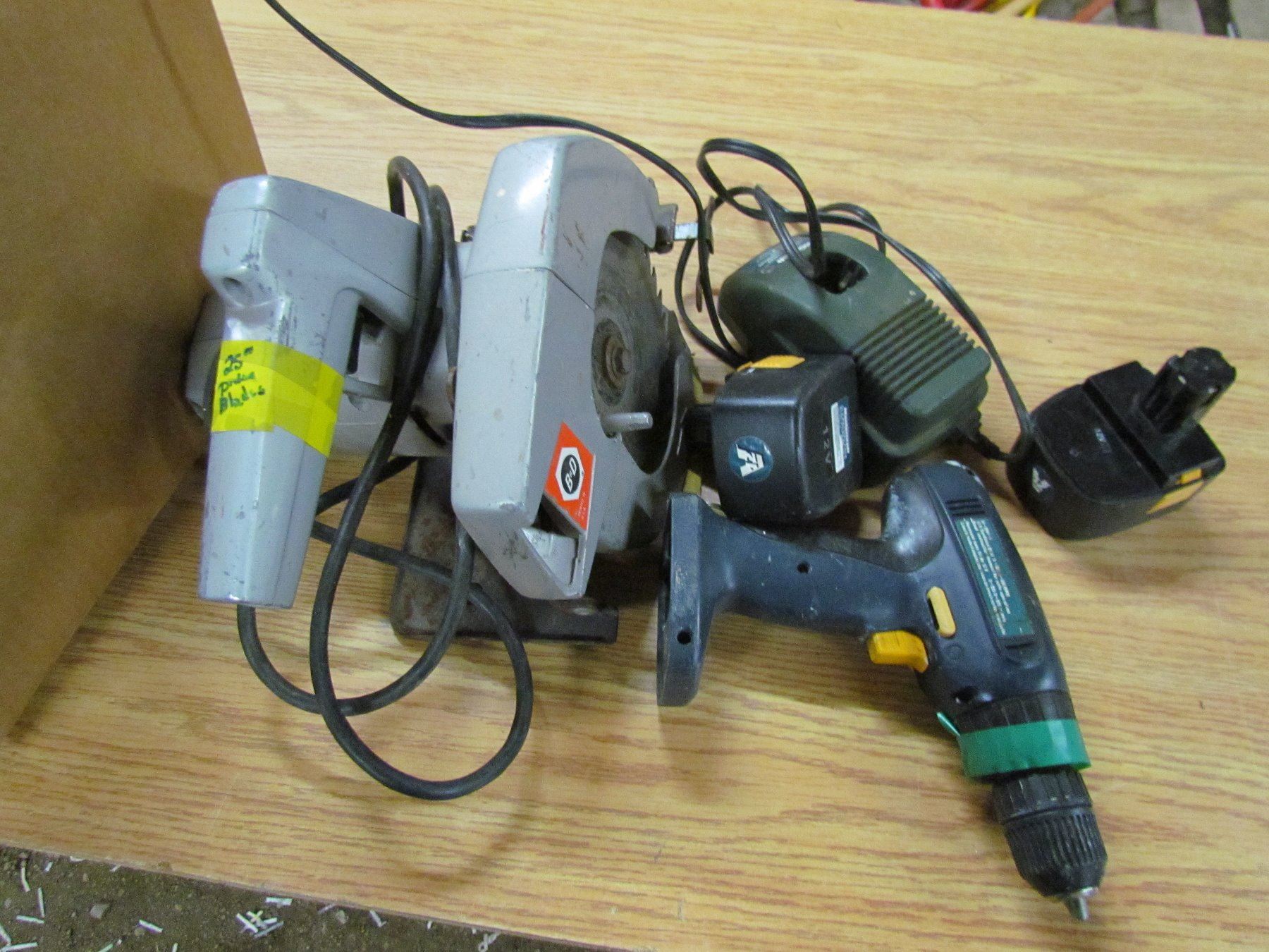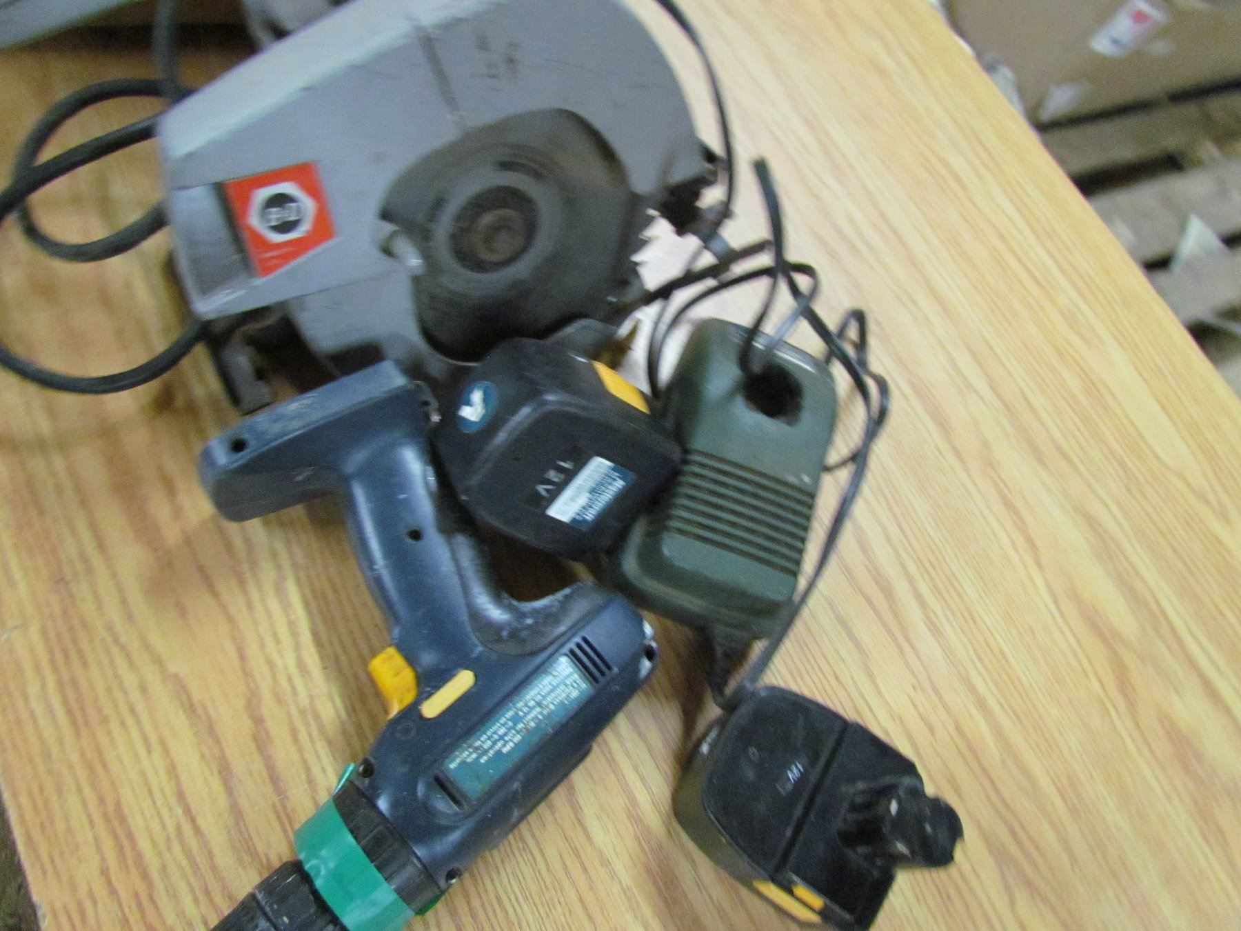 TOOL LOT INCLUDING A CORDLESS DRILL AND CHARGER, SKILL SAW, ETC...