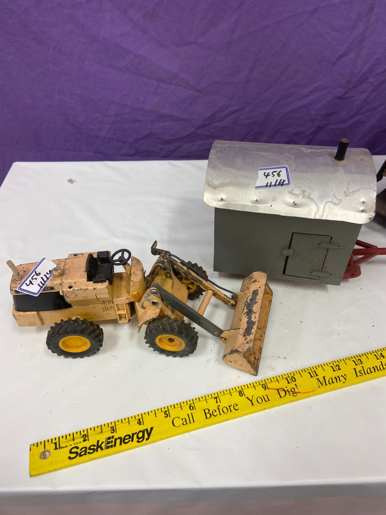 TOY CABOOSE, J.D LOADER + 1940'S CRANE