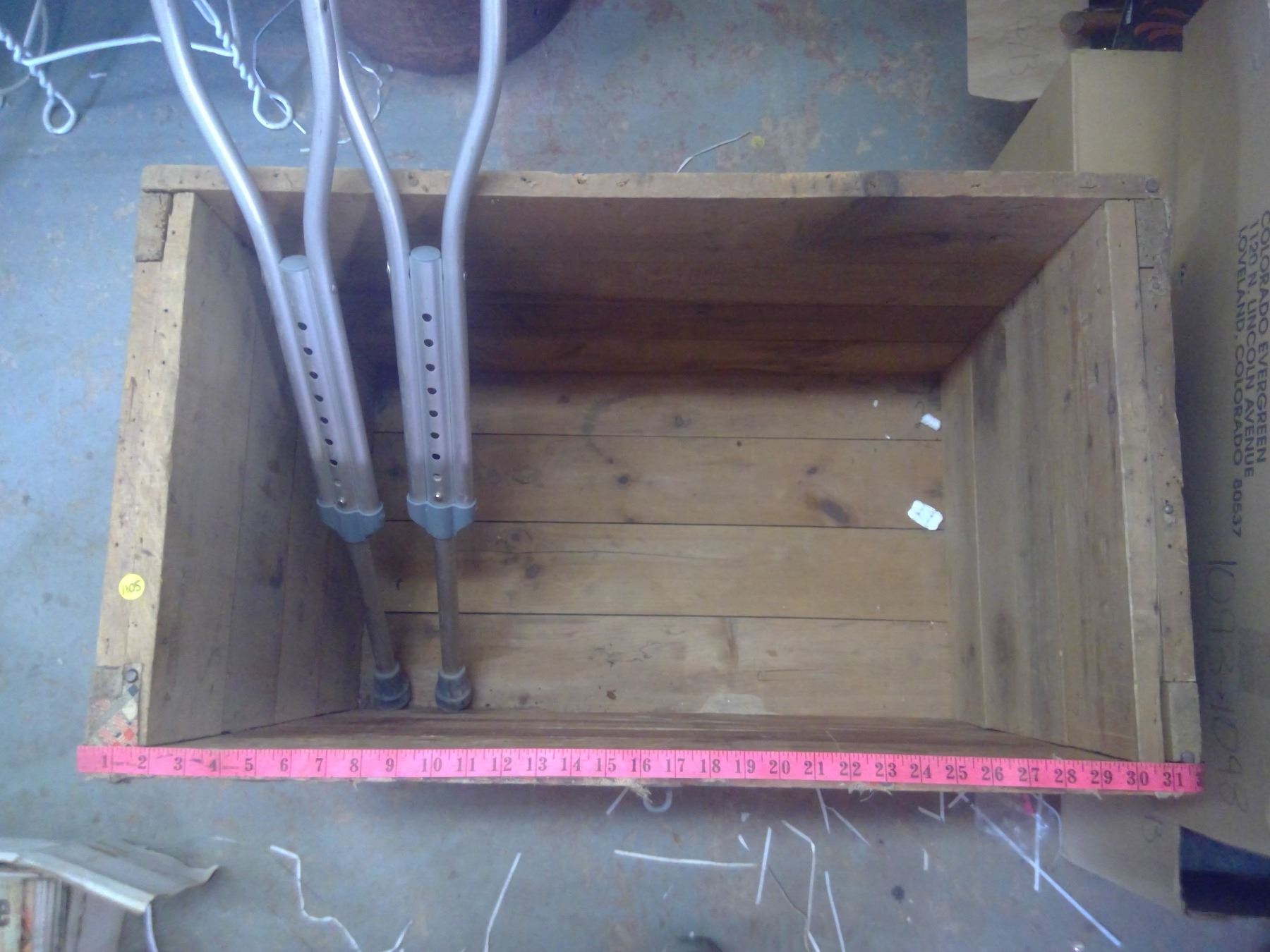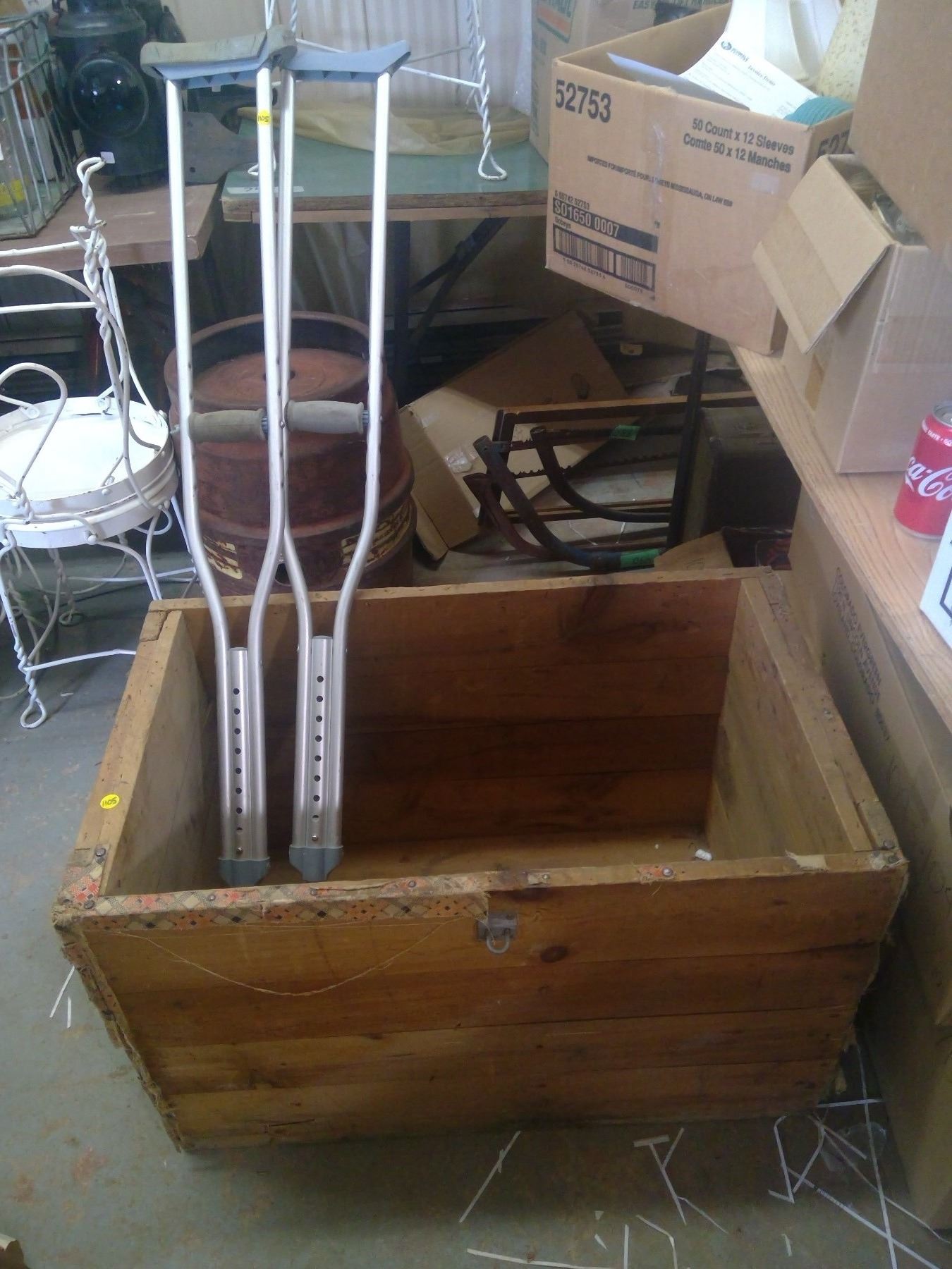 TRUNK W/NO LID + DAMAGED CRUTCHES