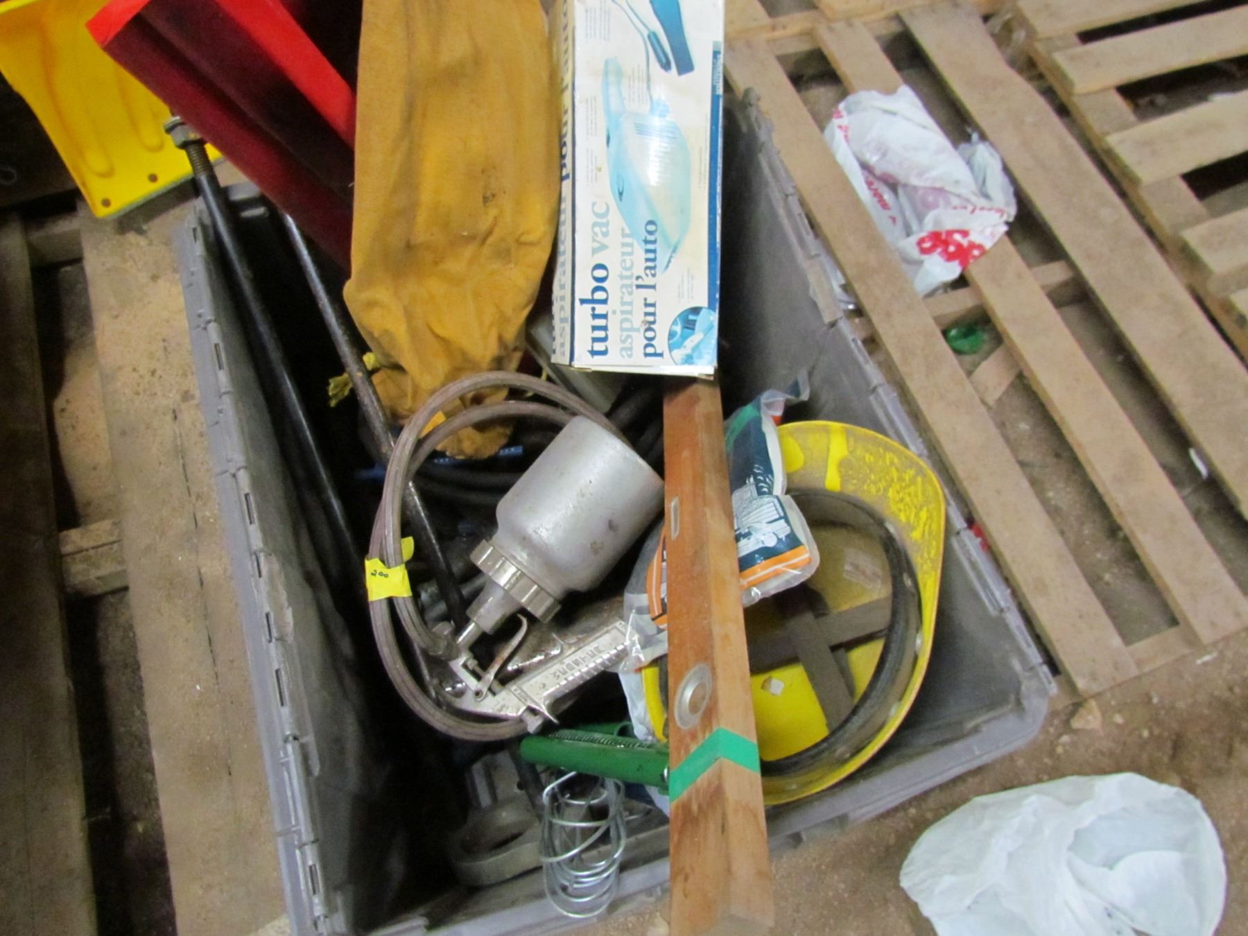 TUB LOT INCLUDING, GEAR PULLERS, PAINT SPRAYER, VACUUM, ETC…