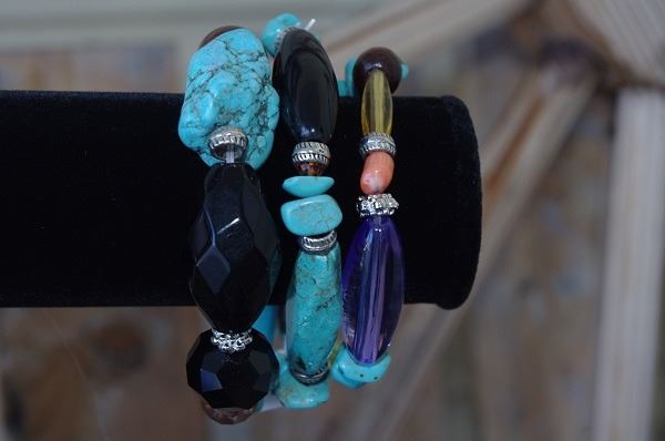 TURQUOISE MULTICOLORED TRIPLE LAYER STONE/BEADED BRACELET **MISSING ONE LAYER