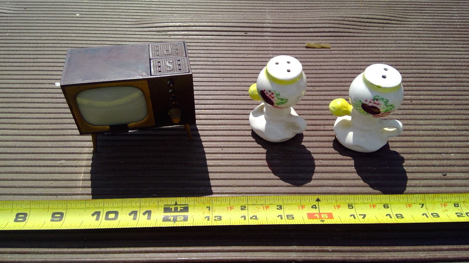 TV SALT AND PEPPER SHAKERS C/W ADDITIONAL SET OF SALT AND PEPPER SHAKERS