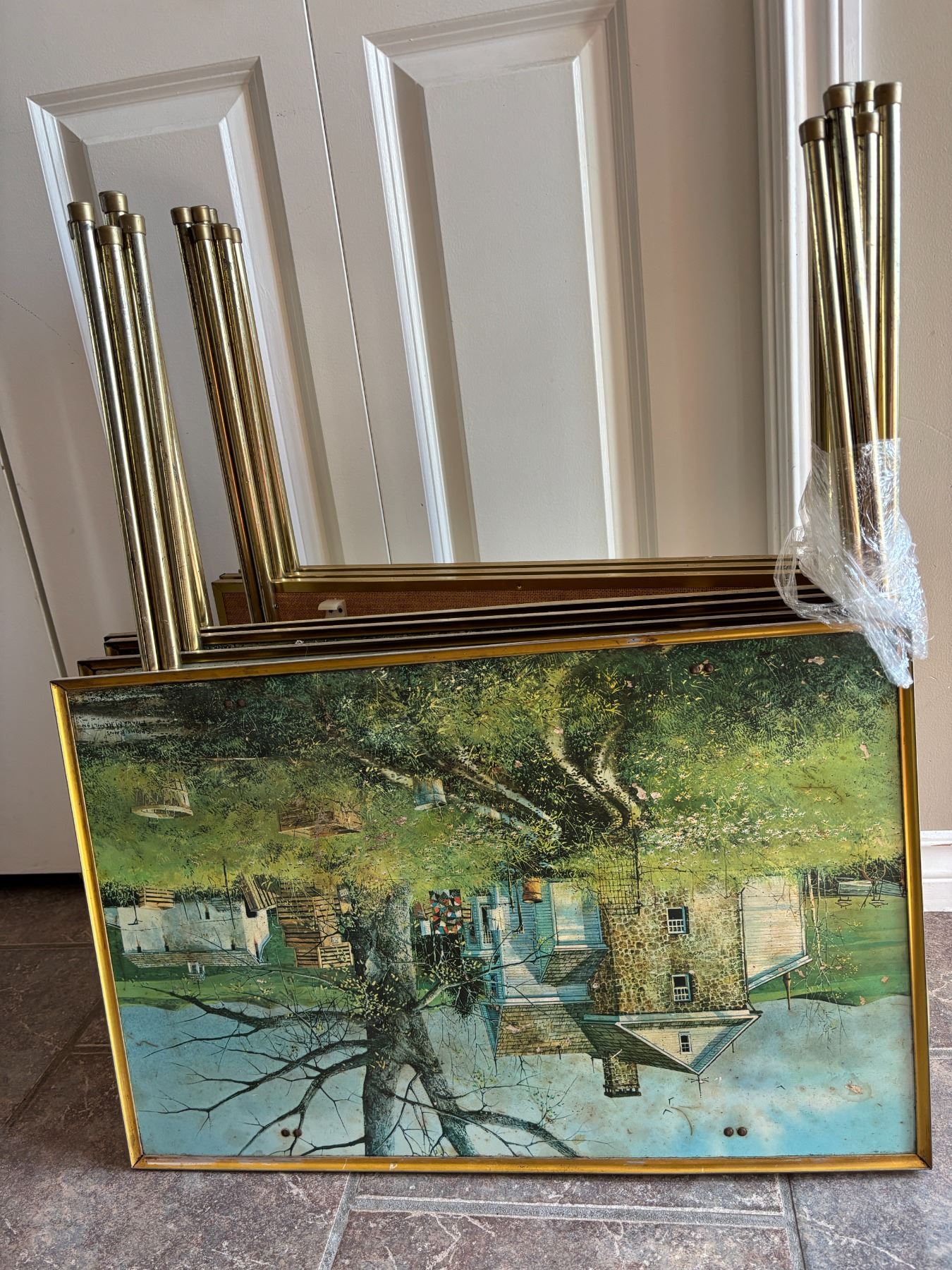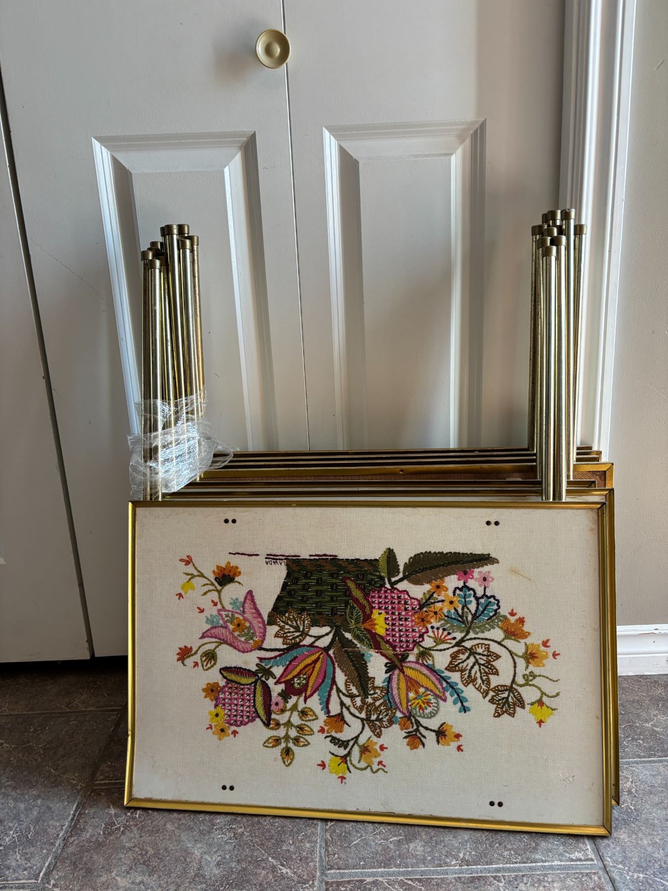 Four old time country backround scene, and three cross stitch design, 28” highx 23” wide