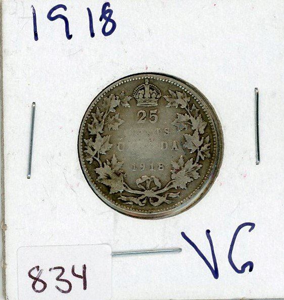 TWENTY FIVE CENT COIN (CANADIAN) *1918* (SILVER)