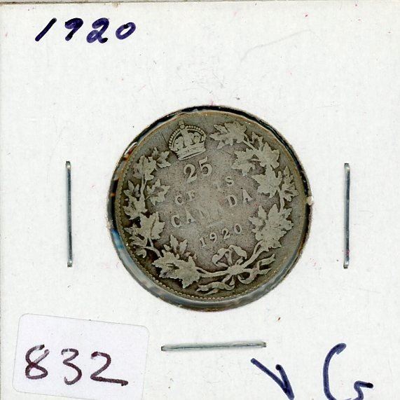 TWENTY FIVE CENT COIN (CANADIAN) *1920* (SILVER)