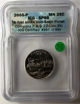 TWENTY FIVE CENT COIN (ICG CERTIFIED ENCASED– USA) *MINNESOTA, 2005 P*